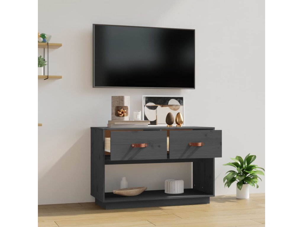 TV skříňka šedá 90 x 40 x 60 cm masivní borové dřevo