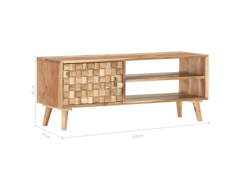 Tento TV stolek z masivního akáciového dřeva je díky svému neobyčejnému designu skvělým doplňkem do vašeho obývacího pokoje. Můžete jej rovněž použít jako nízkou skříňku, příborník nebo úložnou skříňku. Vaše návštěvníky zaručeně zaujme na první pohled.