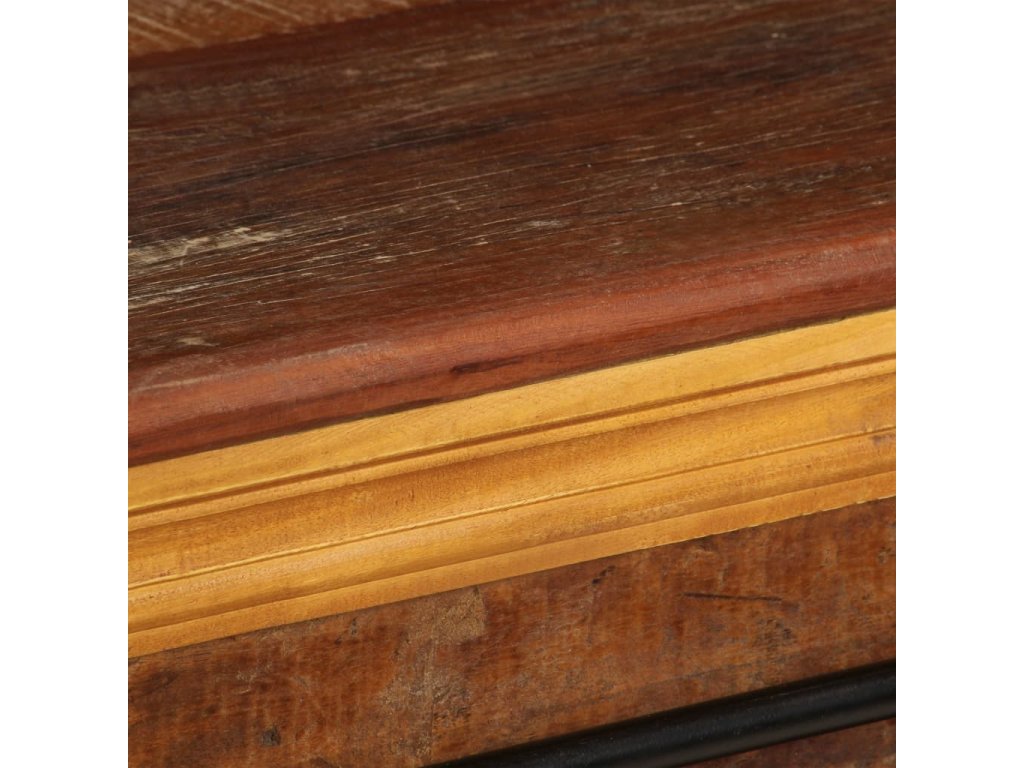 Hi-fi skříňka je vyrobená z masivního recyklovaného dřeva, které pochází z trámů, podlah a podpěrných nosníků ze starých budov určených k demolici. Sestává tedy z různých druhů dřeva, jako jsou borovice, teak, buk, dub, cedr, mangovník, akácie apod. Recyklované dřevo tak nabývá vlastností všech těchto rozličných typů dřevin. Navíc je již zestárlé, ošlehané a vyschlé, takže se nesmršťuje ani neohýbá. Nízká skříňka je celá ručně vyrobená a překrásná kresba dřeva ji činí naprosto jedinečnou a lehce odlišnou od všech ostatních. Kovové prvky dodávají stolku pod TV industriální nádech.