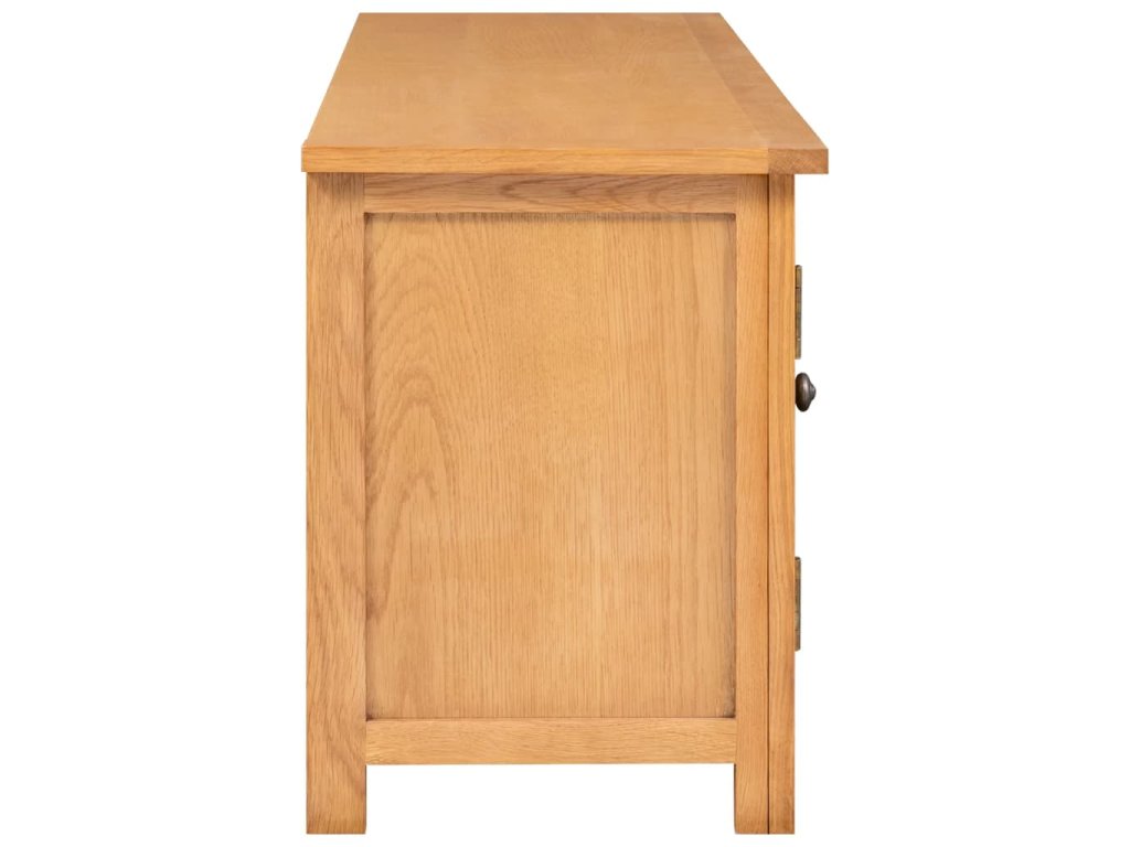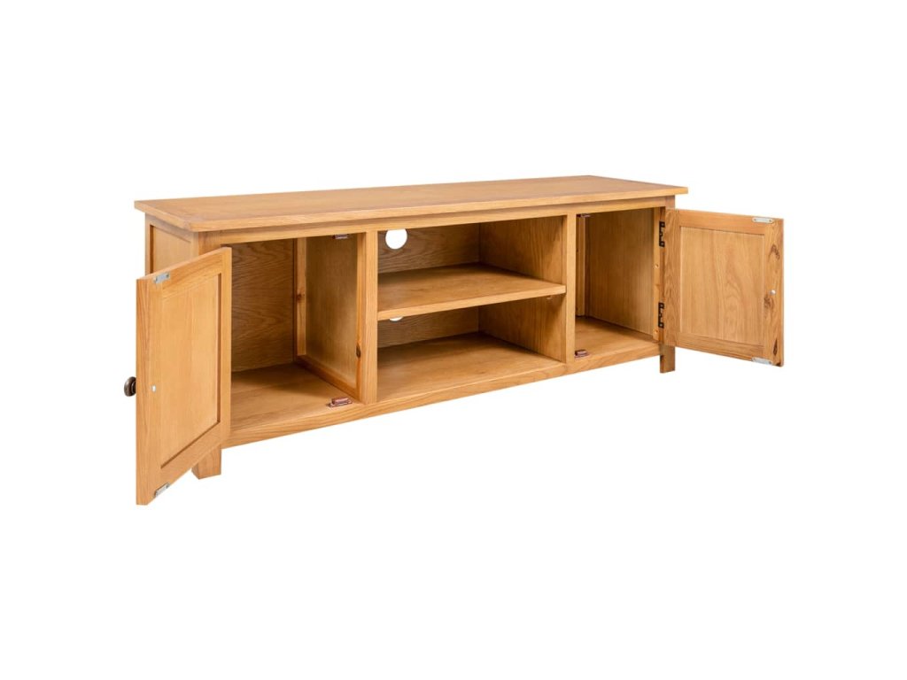 Náš televizní stolek je zhotovený z dubového dřeva, díky čemuž je masivní a robustní. Na jeho pevnou,stabilní desku můžete bezpečně umístit televizi, mísu s ovocem, vázu nebo další dekorativní předměty. Stolek má dvě skříňky a dvě otevřené přihrádky, kam si můžete uložit multimediální příslušenství, knihy a mnoho dalšího.