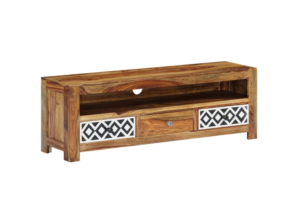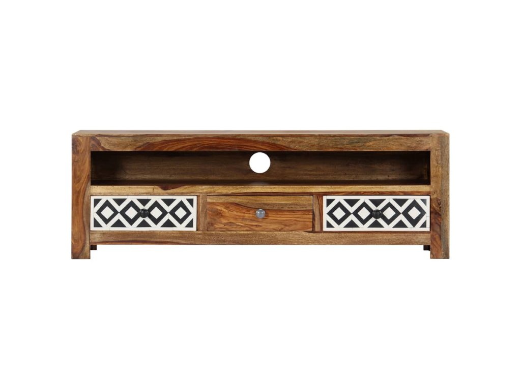 TV stolek ve vintage stylu je vyrobený z masivního akáciového dřeva a je ideálním nadčasovým doplňkem do vašeho domova. Akácie, jemuž se někdy také říká rosewood nebo palisandr, je tropické tvrdé dřevo proslulé svou bohatou texturou. Každá fáze výrobního procesu je prováděna s mimořádnou péčí, ať už se jedná o leštění, natírání nebo lakování. Televizní skříňka disponuje 3 zásuvkami, kam si můžete uložit nejrůznější drobnosti, a otevřenou přihrádkou pro ukládání multimediálních zařízení, herních konzolí a časopisů.