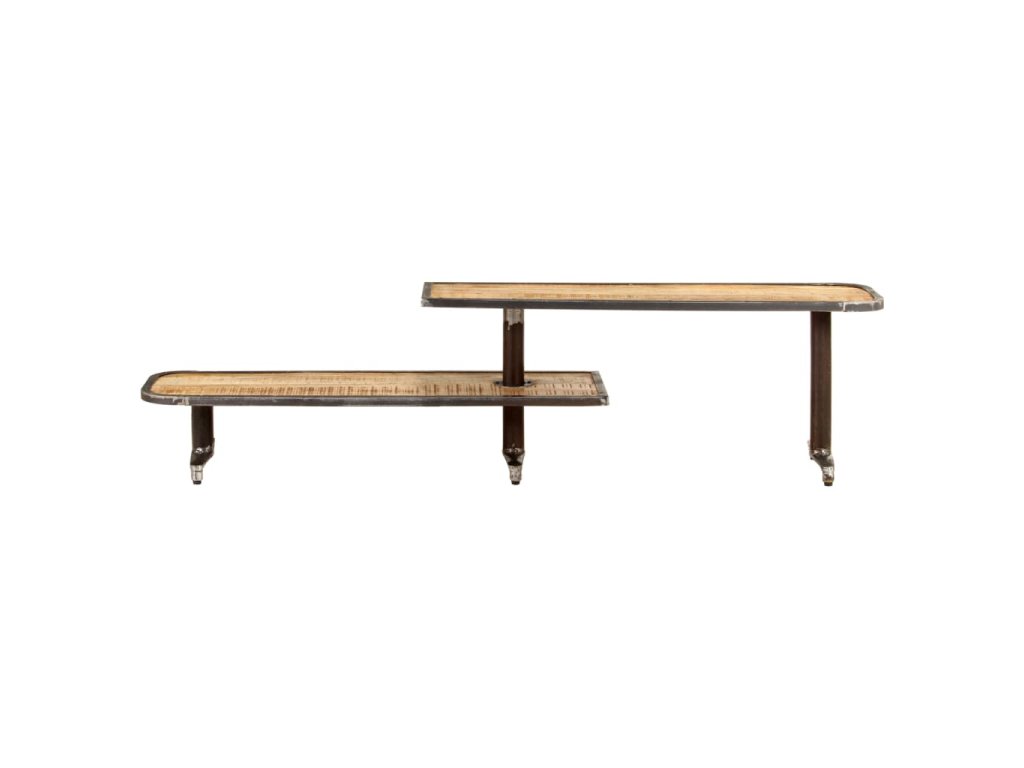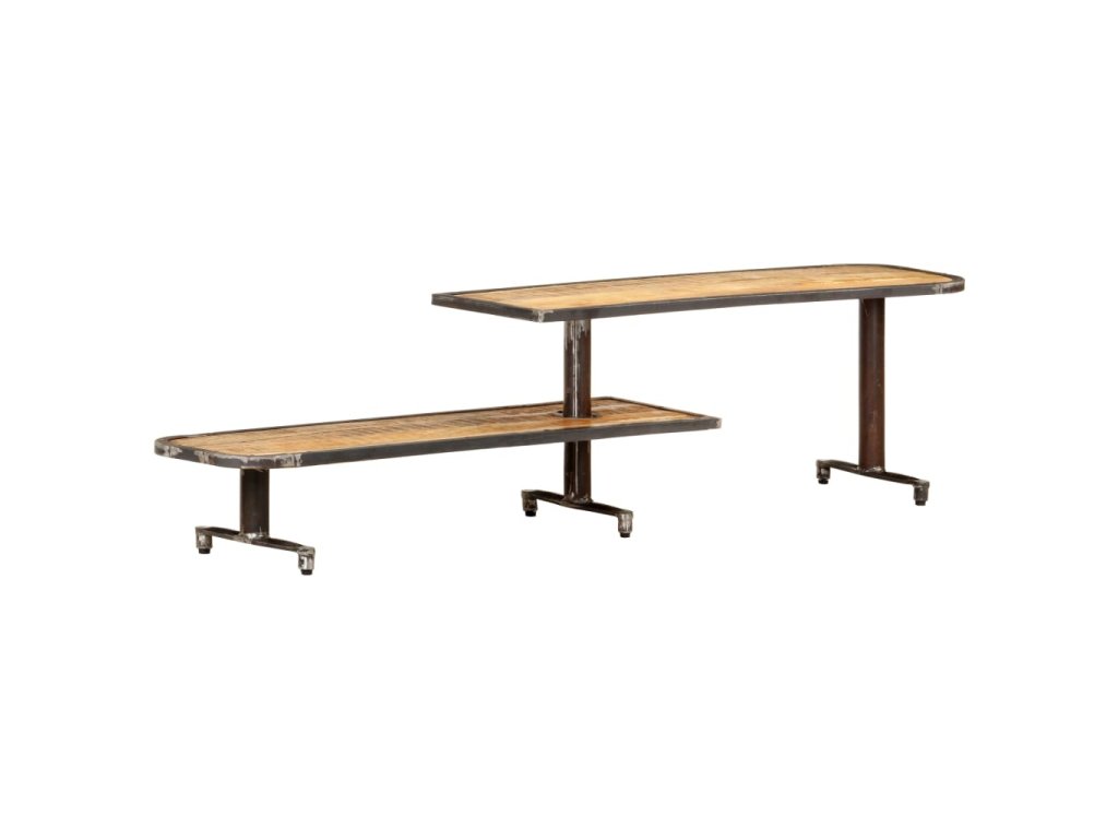 TV stolek je zhotovený z masivního mangovníku, což je tropické tvrdé dřevo, které dokáže unést značnou váhu a skvěle odolává opotřebení i působení času. Zručné zpracování a nádherná kresba dřeva dávají každému kusu unikátní charakter, kterým se lehce liší od všech ostatních. Tento stolek má jedinečný design s 1 výše a 1 níže položenou policí, rozhodně se proto ve vašem interiéru osvědčí jako poutavý doplněk. Na robustní police si můžete položit DVD, multimediální zařízení, knihy a další drobnosti.