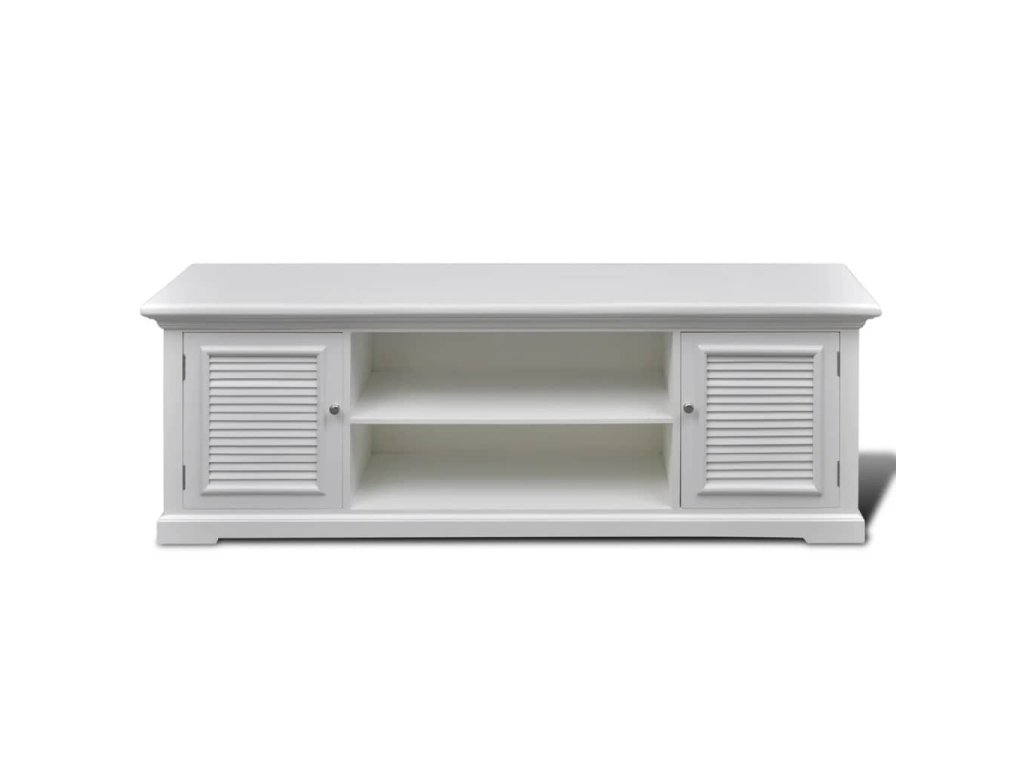 TV skříňka, vyrobená z robustní MDF a borového dřeva, výborně odolává každodennímu používání. Bílý nátěr usnadňuje její čištění. Postačí vám k tomu navlhčený hadřík.