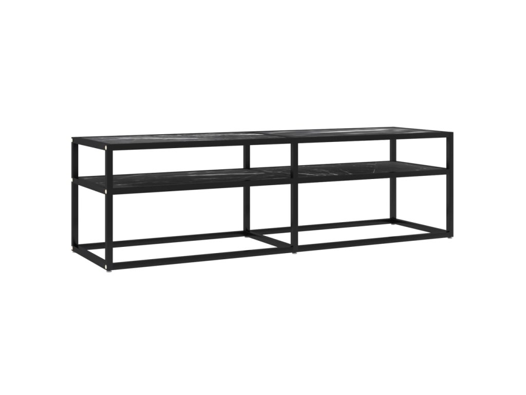 TV stolek černý mramor 140 x 40 x 40,5 cm tvrzené sklo