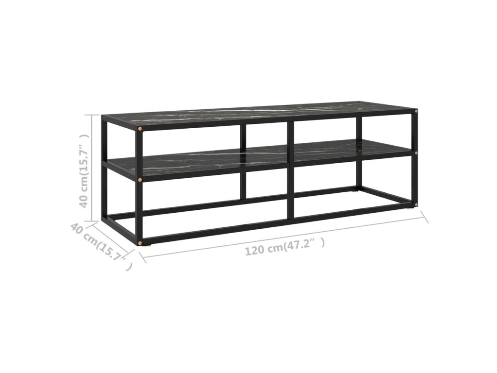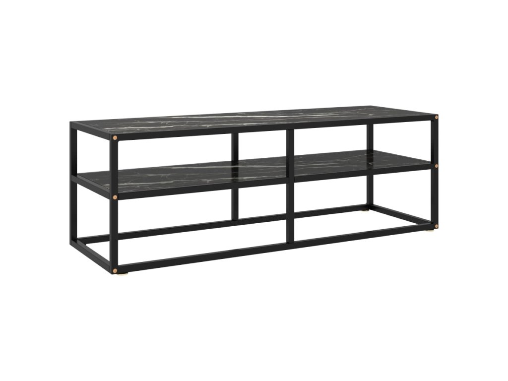 TV stolek černý s černým mramorovým sklem 120 x 40 x 40 cm