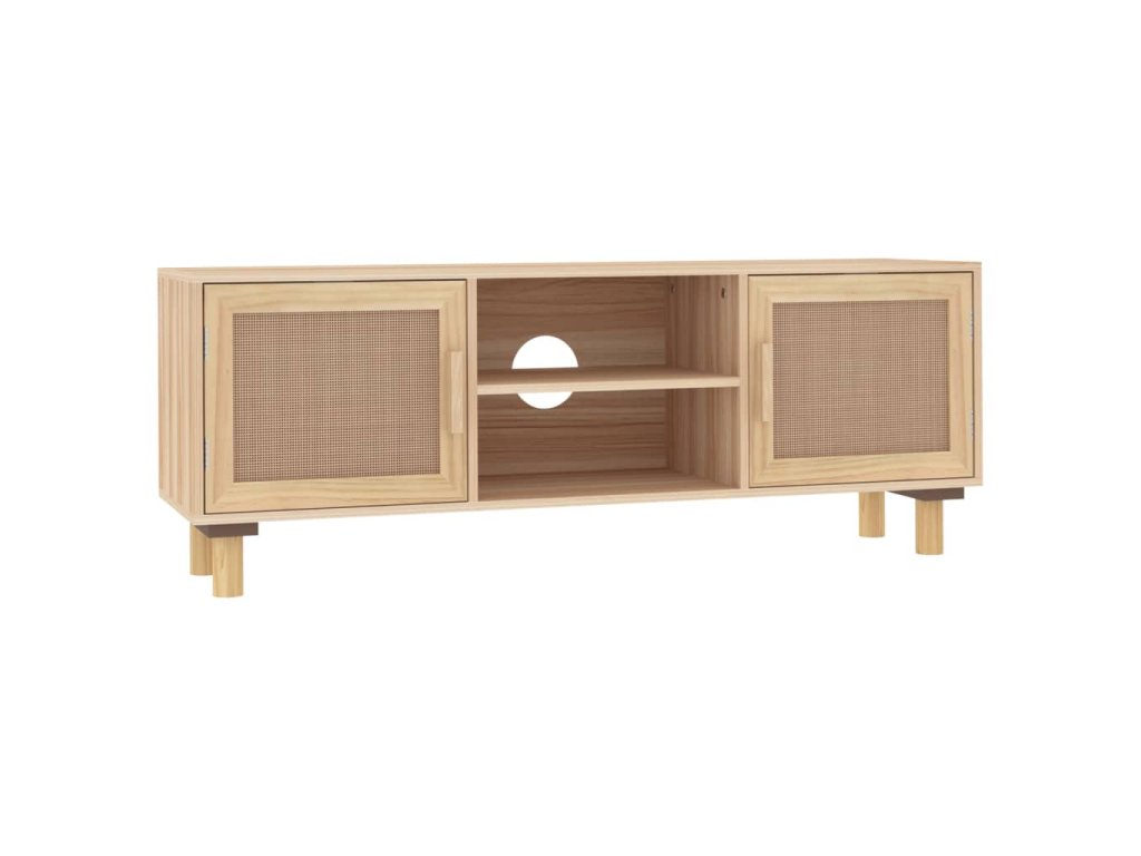 TV stolek hnědý 105x30x40 cm masivní borovice a přírodní ratan