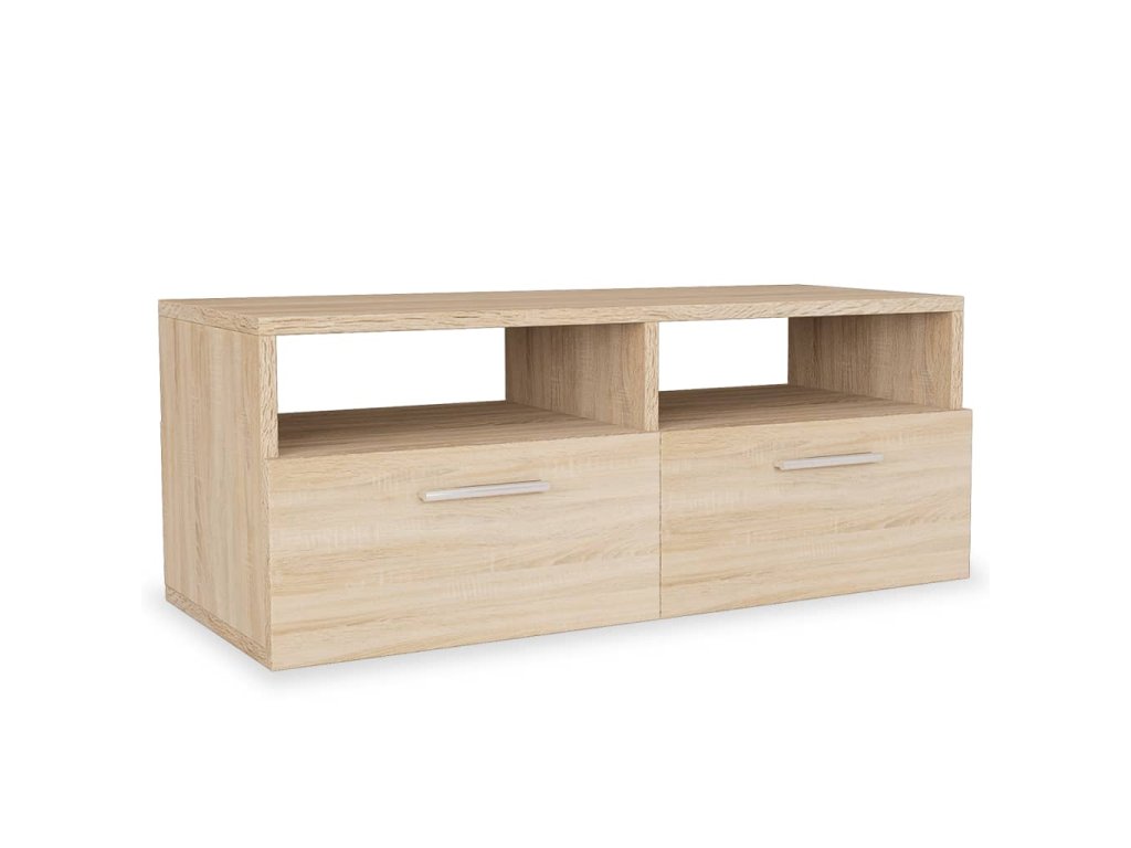 Stolek na multimediální zařízení je vyroben z kompozitního dřeva, který doplňují lišty z PVC. Je proto stabilní a odolný. Je vybavený dvěma otevřenými policemi a skříňkami, jejichž dvířka se vyklápí směrem dolů. Lze do něj uložit nejen váš DVD přehrávač, ale také herní konzoli, satelitní přijímač a všechna vaše CD či DVD. Díky svým čistým liniím navíc i dobře vypadá. Můžete ho bez obav postavit do obývacího pokoje či ložnice.