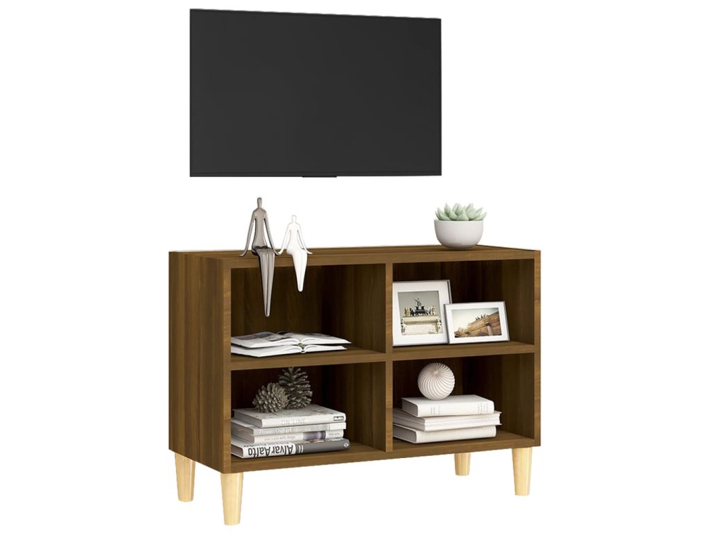 TV stolek masivní dřevěné nohy hnědý dub 69,5 x 30 x 50 cm