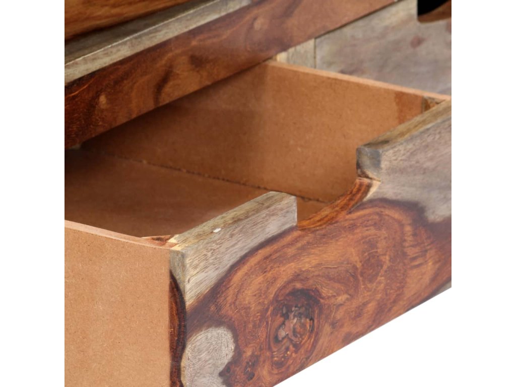 TV stolek je vybaven 4 zásuvkami a 1 velkou přihrádkou a poskytuje dostatek prostoru pro uložení vašich multimediálních zařízení a herních konzolí nebo uschování knih, časopisů a celé řady dalších věcí. Tato HiFi skříňka je vyrobená z masivního akáciového dřeva a byla naleštěna, natřena a nalakována, čemuž vděčí za svůj půvabný a rafinovaný vzhled. Akácie, také známý jako rosewood nebo palisandr, je tropické tvrdé dřevo oceňované pro svou bohatou kresbu.