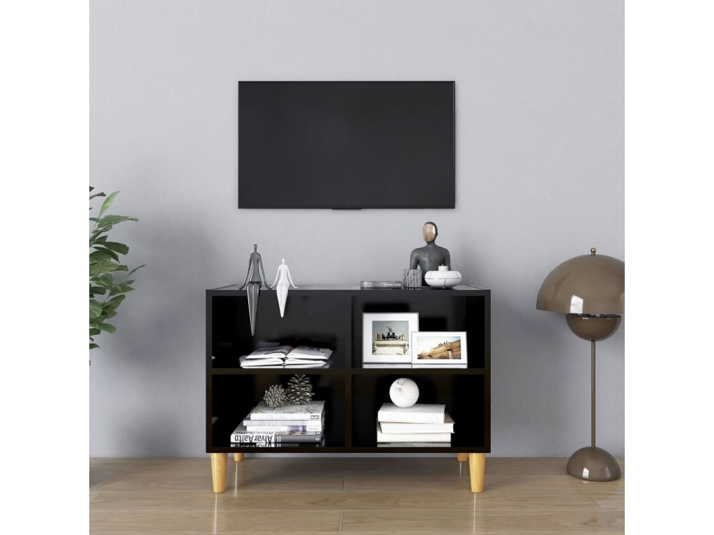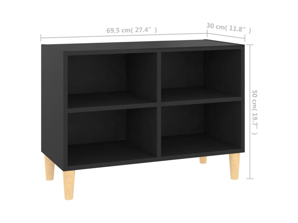 TV stolek nohy z masivního dřeva černý 69,5 x 30 x 50 cm