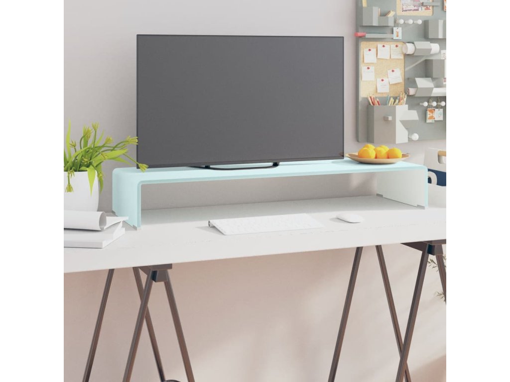 Tuto skleněnou polici můžete použít také jako TV stolek nebo stojan pod monitor vašeho stolního počítače, televizi, notebook nebo jiná multimediální zařízení. Když svůj monitor umístíte na tuto skleněnou polici, budete mít lepší výhled na obrazovku a zároveň se vám bude sedět pohodlněji, což vám pomůže snížit napětí ve vaší šíji a zádech. Úložný prostor pod ní můžete využít pro umístění svého DVD přehrávače, herní konzole, streamovacího zařízení, přijímačů a paměťových nosičů.