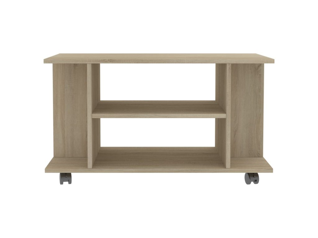 Televizní skříňka je vyrobená z kompozitní dřevo, a je tudíž robustní, odolná a má dlouhou provozní životnost. Nachází se v ní 4 otevřené police, které vám nabídnou spoustu úložného prostoru pro přehlednou organizaci časopisů, knih, DVD přehrávačů, přijímačů, disků a multimediálních zařízení, to vše navíc na dosah ruky. Skříňku také můžete snadno přesouvat po 4 pojezdových kolečkách anebo ji naopak pevně zakotvit na místě 2 uzamykatelnými kolečky.