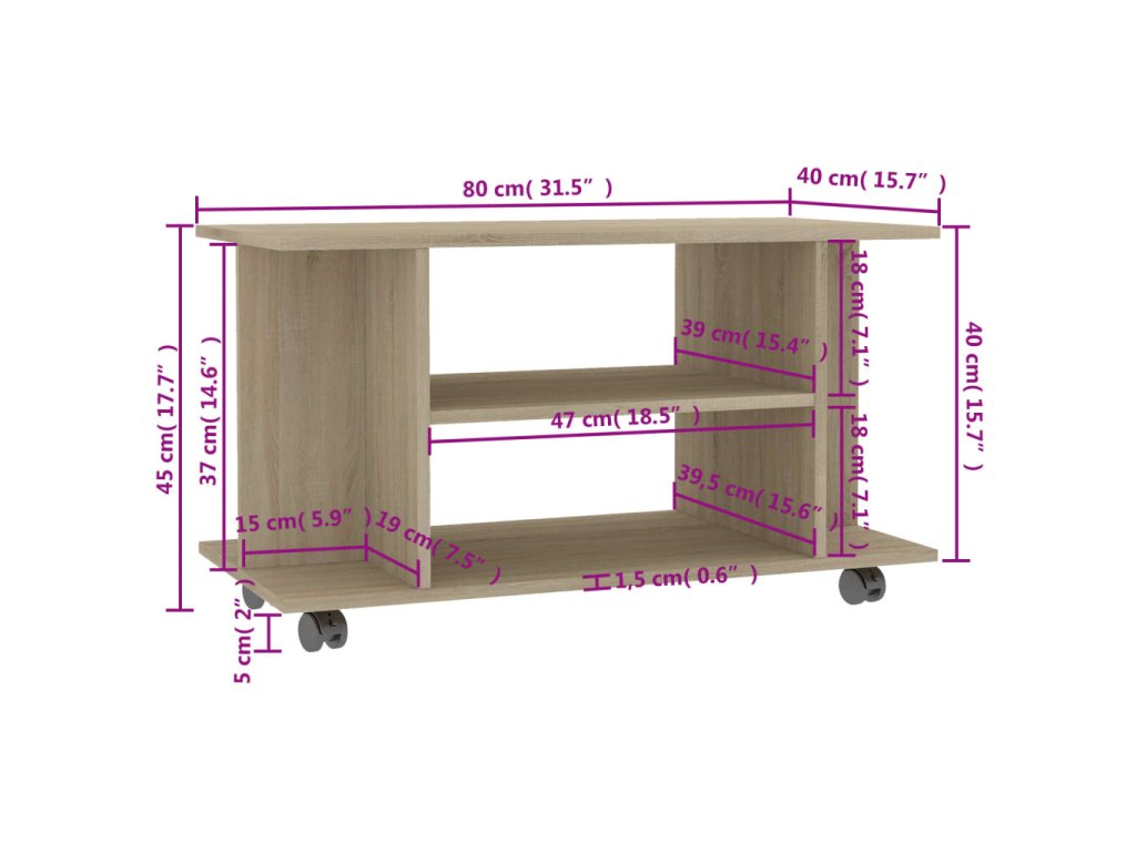 TV stolek s kolečky dub sonoma 80 x 40 x 45 cm kompozitní dřevo