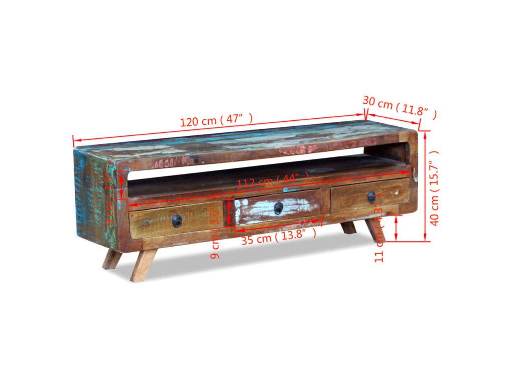 TV stolek se 3 zásuvkami masivní recyklované dřevo