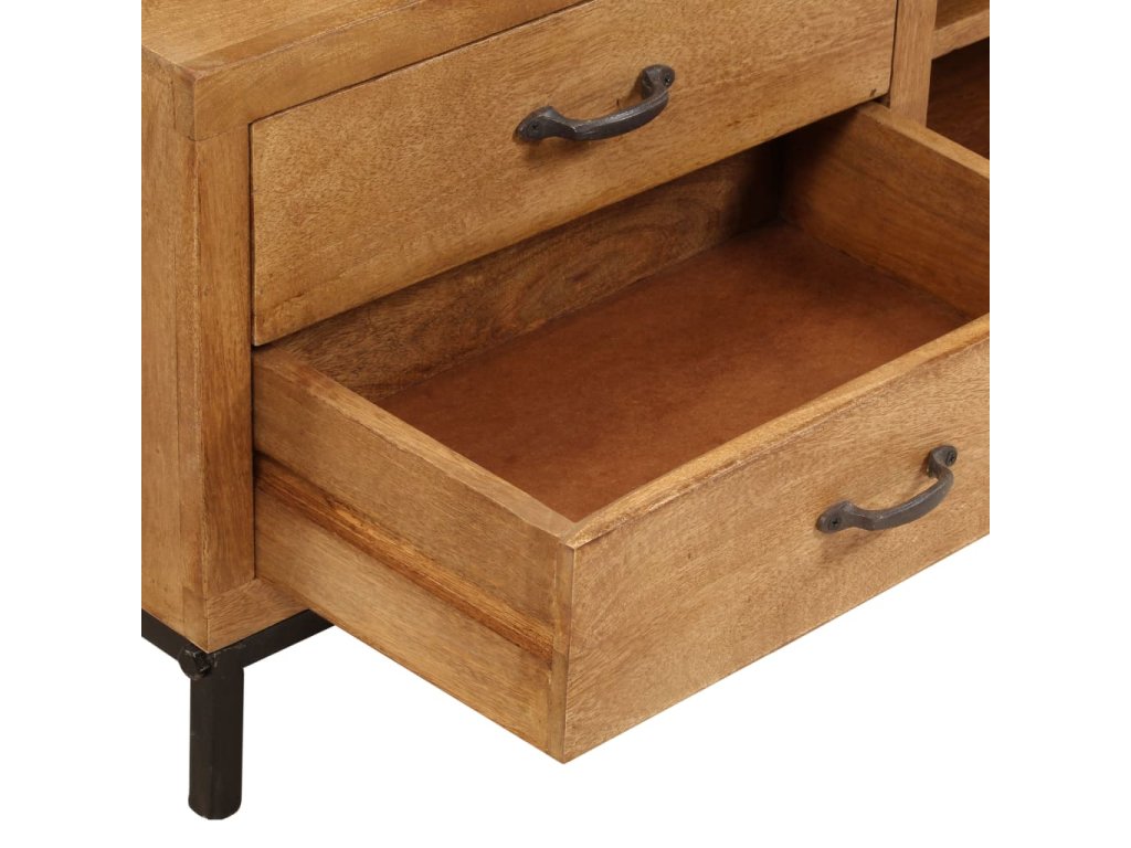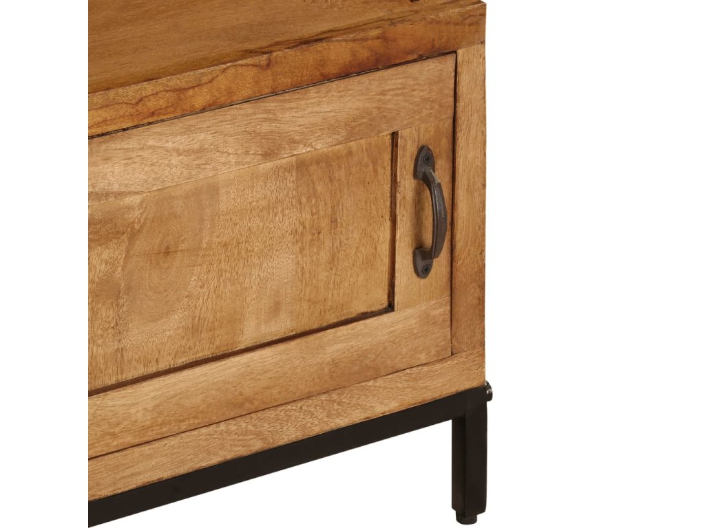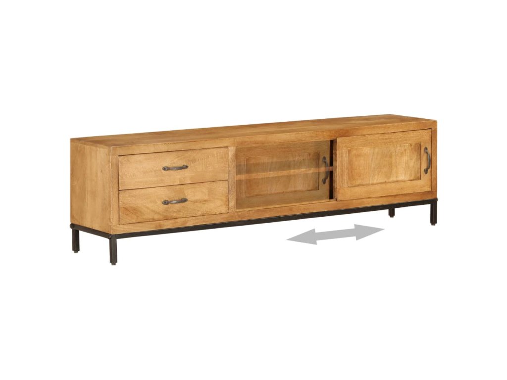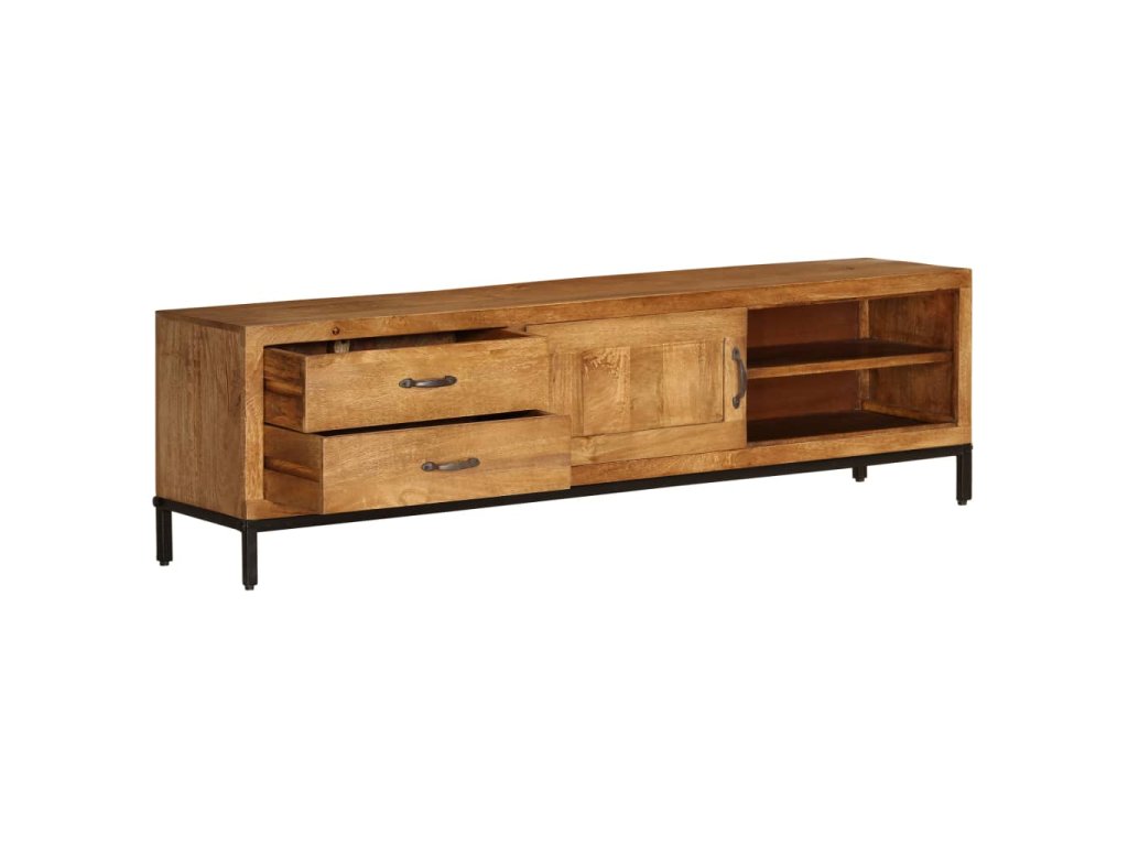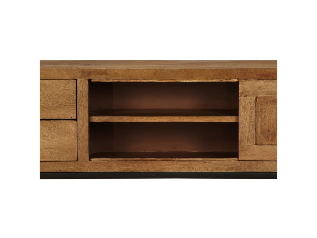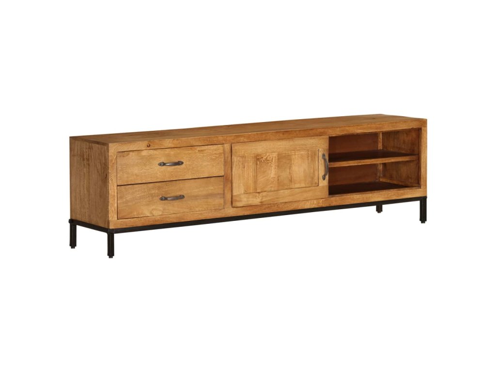 TV stolek je ručně vyroben z mangovníkového dřeva, které je nejen pevné, trvanlivé a odolné, ale zároveň také krásně vypadá. Zručné zpracování mu dodává velkolepý retro styl. Každý krok výrobního procesu je prováděn s největší péčí, ať už se jedná o leštění, natírání nebo lakování. Díky řemeslnému zpracování a nádherné kresbě dřeva je každý kus nábytku jedinečný a lehce se odlišuje od všech ostatních. Ocelové nohy zaručují skvělou stabilitu.