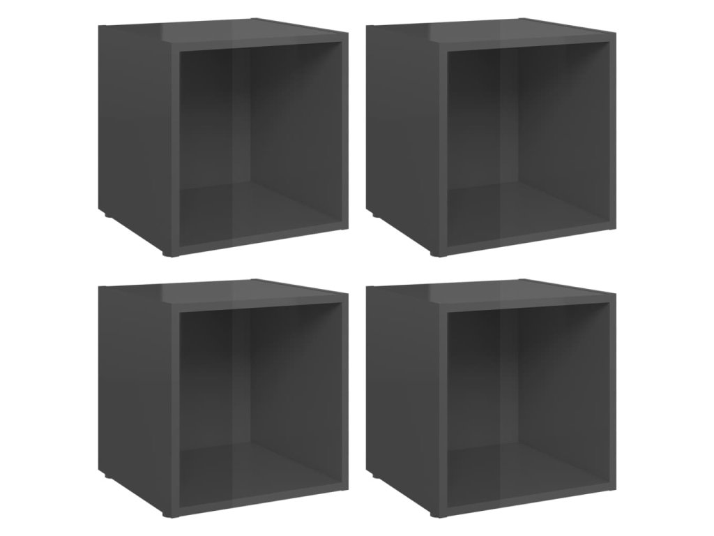 TV stolky 4 ks šedé vysoký lesk 37x35x37 cm kompozitní dřevo