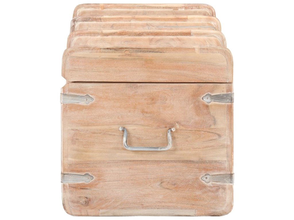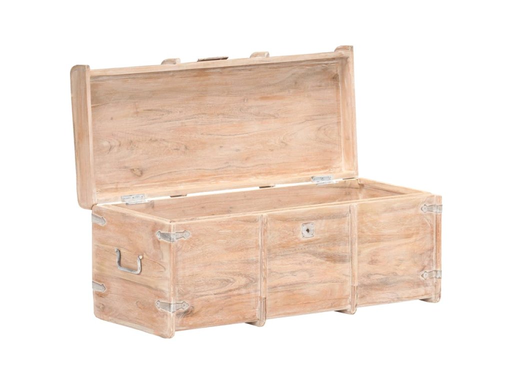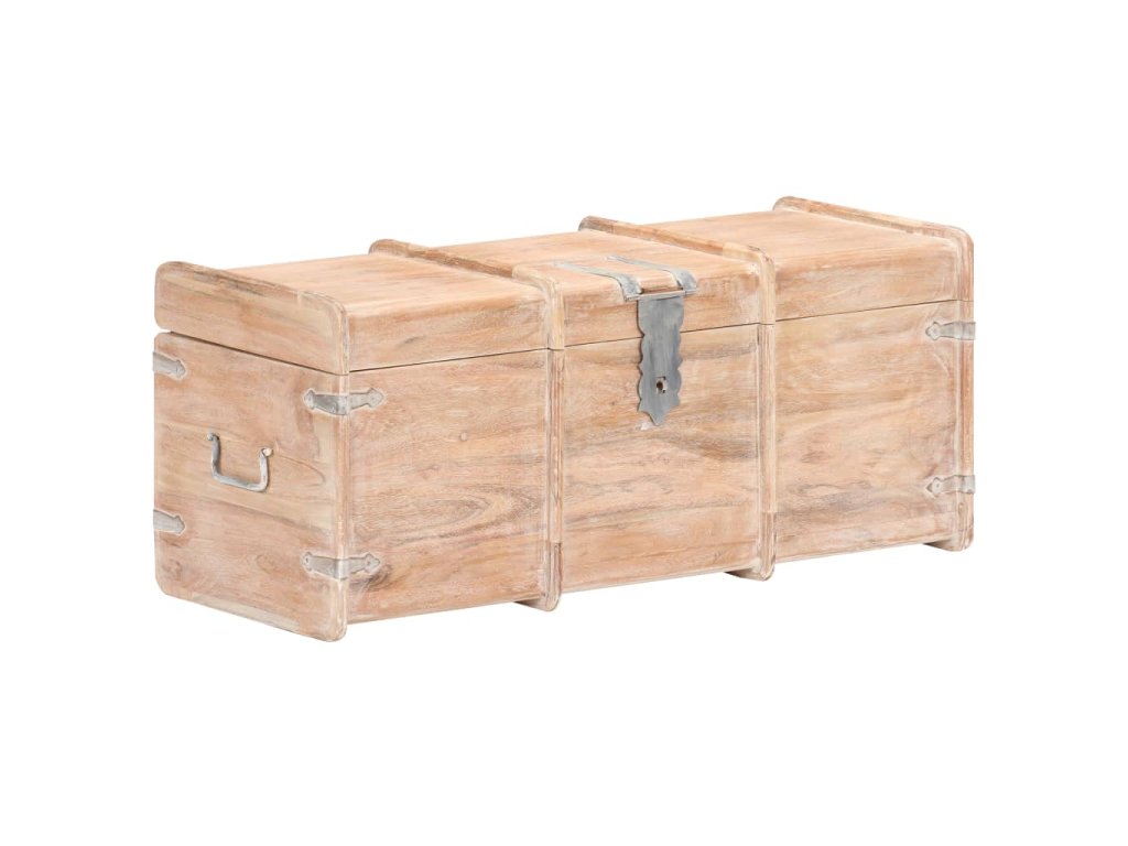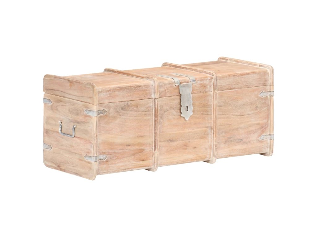Tato úložná skříňka je vyrobená z masivního akáciového dřeva, které je stabilní a má dlouhou životnost. Má západku na přední straně a dvě rukojeti pro snadné zvednutí truhly. Na stabilní rovnou horní desku si můžete vystavit různé dekorace. Řemeslné zpracování a krásná dřevěná kresba dává každému kusu nábytku jedinečný a od všech ostatních mírně odlišný charakter.