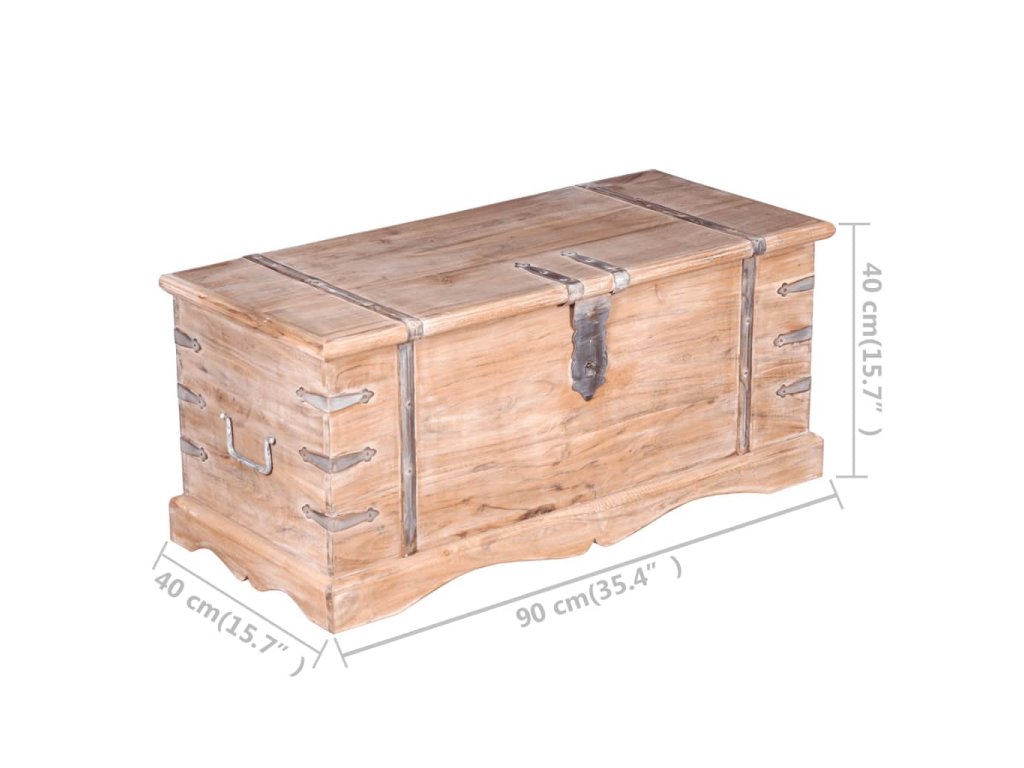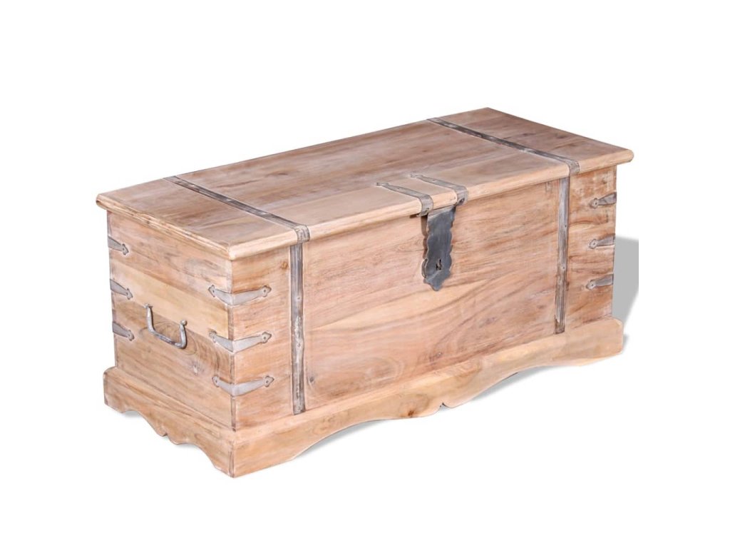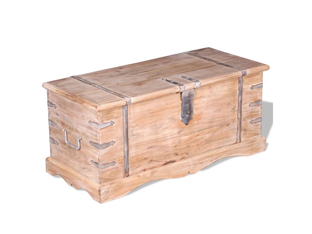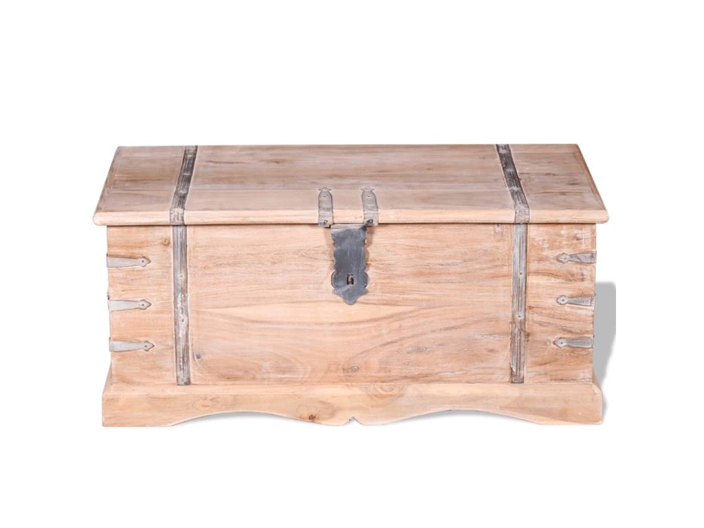 Úložný box vám poskytne spoustu místa, kam si můžete uložit své oblečení, časopisy, knížky, nářadí a další věci. Na přední straně má západku a dvě rukojeti po stranách. Jelikož má pevnou horní desku, lze tento dřevěný box použít také jako konferenční stolek, stolek ke gauči, stolek do obývacího pokoje, odkládací stolek, koncový stolek atd. Úložná truhla je ručně vyrobena z masivního dřeva. Zručné zpracování a překrásná kresba dřeva navíc činí každý kus nábytku zcela jedinečným a lehce odlišným od ostatních.