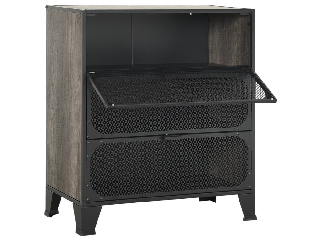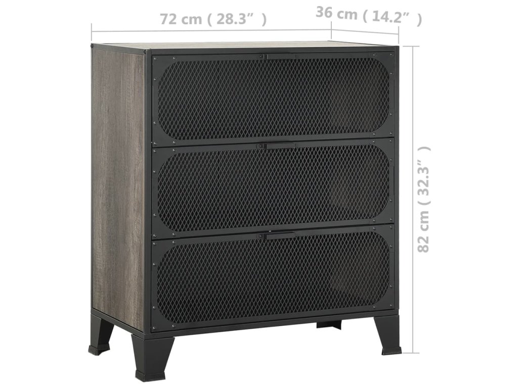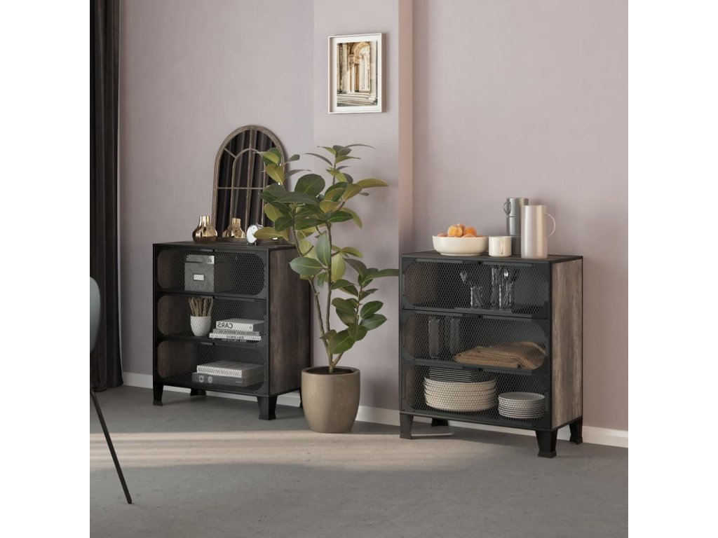 Tato úložná skříň je vyrobena z kovu a MDF, takže je pevná a stabilní. Uvnitř má 2 police, které poskytují dostatek prostoru pro přehledné uložení DVD, multimediálních zařízení, knih a drobných nezbytností, které chcete mít po ruce. Tato skříň s kováním a mřížkovými dvířky dodá vašemu obývacímu pokoji nebo ložnici městský industriální nádech. Navíc se snadno čistí vlhkým hadříkem.