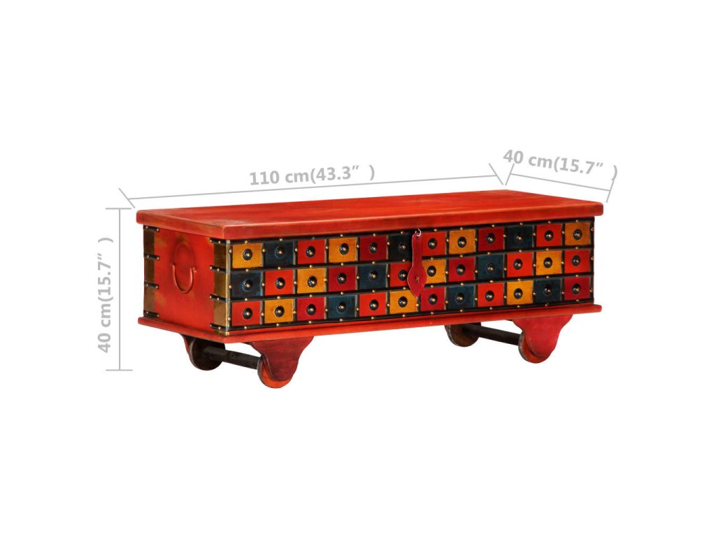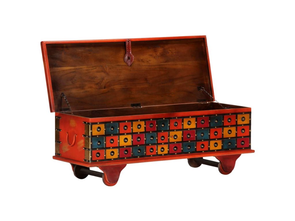 Úložná truhla je vyrobená z masivní akácie, což je tropické tvrdé dřevo s překrásnou kresbou, box je tudíž odolný a jen tak se neponičí. Uvnitř najdete spoustu místa, kam si můžete přehledně uspořádat nejrůznější věci a drobnosti. Jelikož má tato úložná truhla stabilní ploché víko, nic nebrání tomu, abyste ji mohli vtipně využít též jako konferenční stolek, na který si můžete postavit vaše nápoje, vázy a další dekorativní předměty.