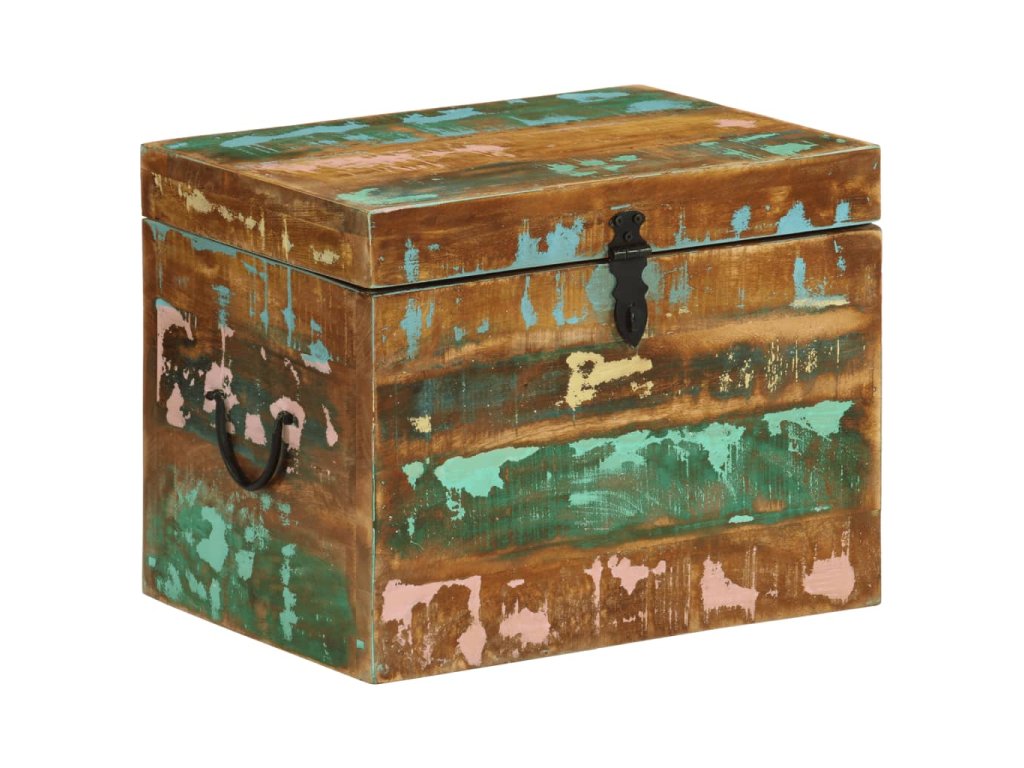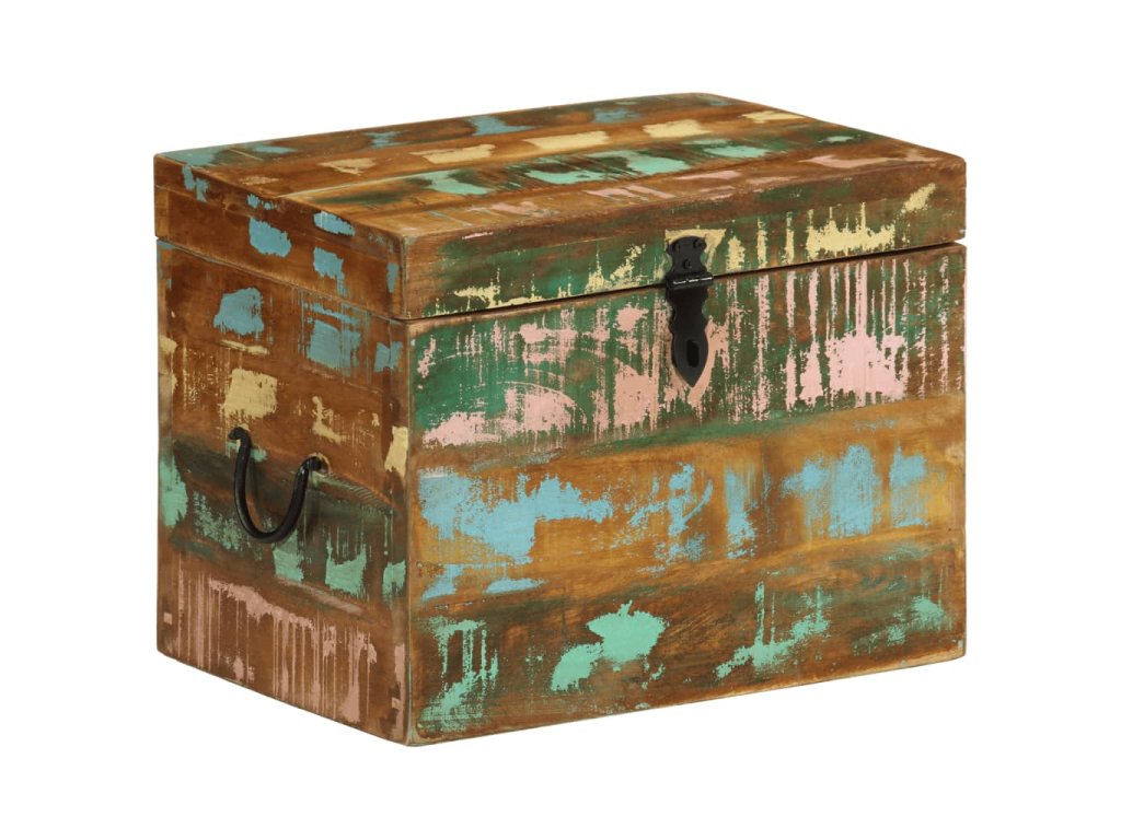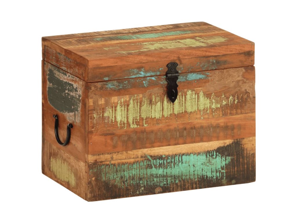 Tento úložný box je vyrobený z recyklovaného dřeva, což znamená, že každý kus nábytku je jedinečný a lehce se odlišuje od ostatních. Nábytek vyrobený z recyklovaného dřeva má vlastnosti různých druhů dřeva, jako je teak, akácie, mango, damarovník atd. Recyklované dřevo masivní, solidní, trvanlivé a krásné. Otvory po hřebících nebo odhalená struktura dřeva s sebou nesou jeho historii a vyzývají další generace, aby k ní přidali tu svoji. Tento kus nábytku ve vašem domě ukáže, že vám záleží na zachování zdrojů, ochraně životního prostředí a udržitelném rozvoji.