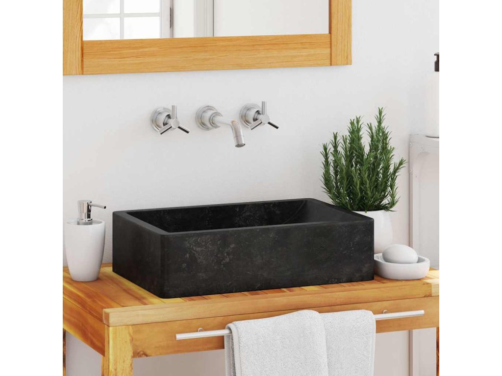 Umyvadlo 45 x 30 x 12 cm mramor černé s vysokým leskem