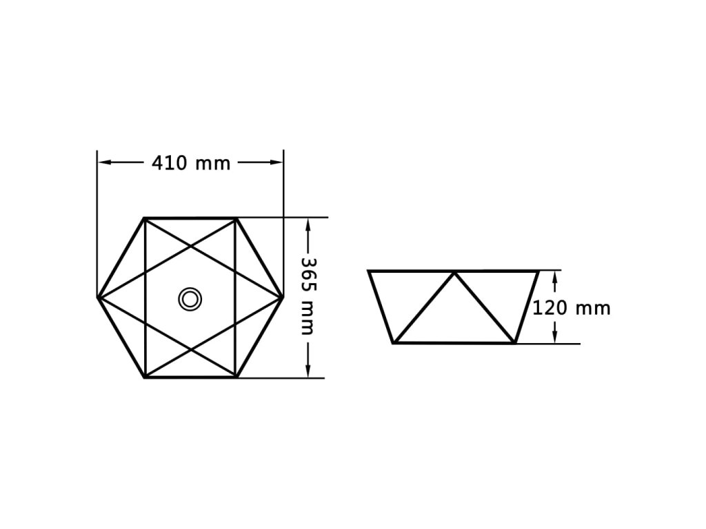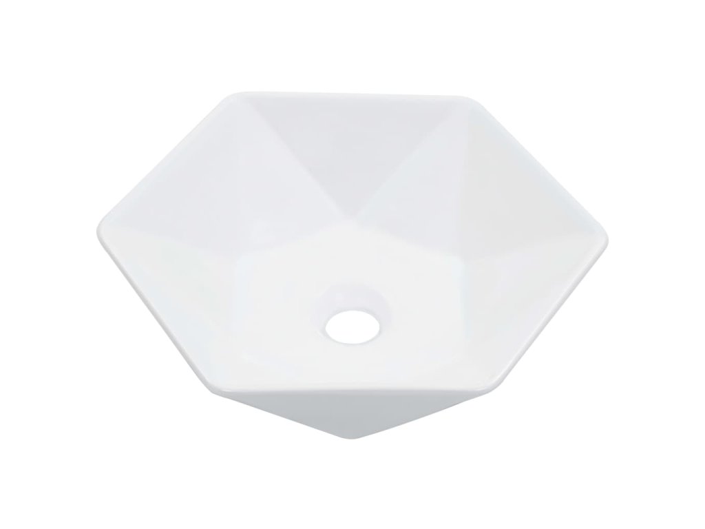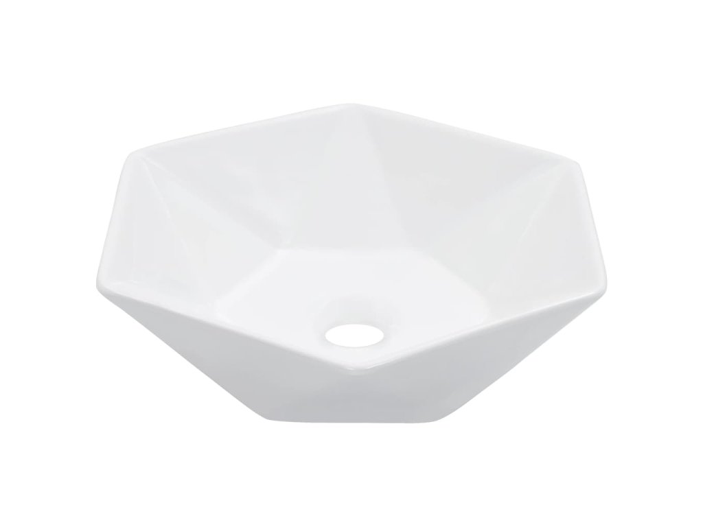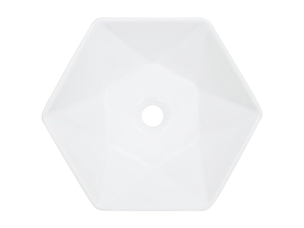 Toto šestihranné umyvadlo je vyrobeno z keramiky a představuje stylový a nadčasový doplněk do každé koupelny, umývárny, šatny nebo na toalety.