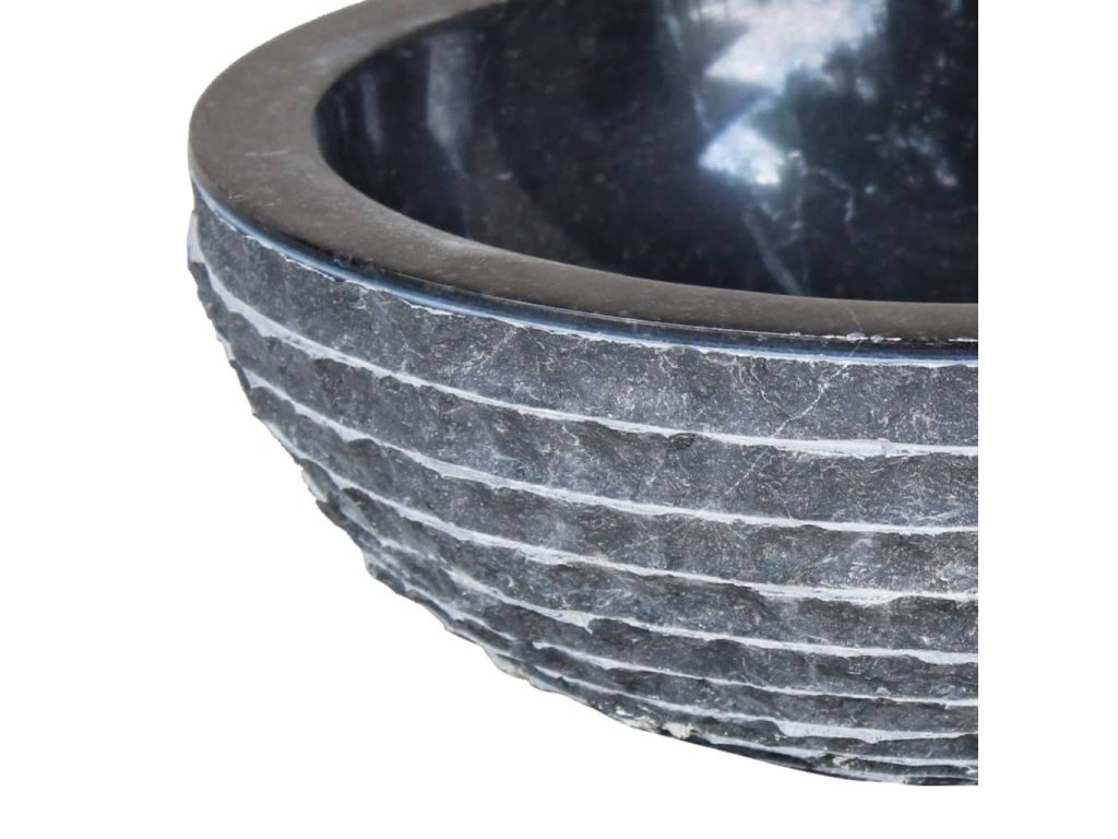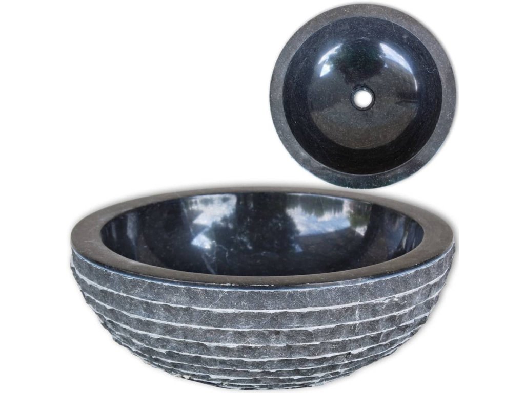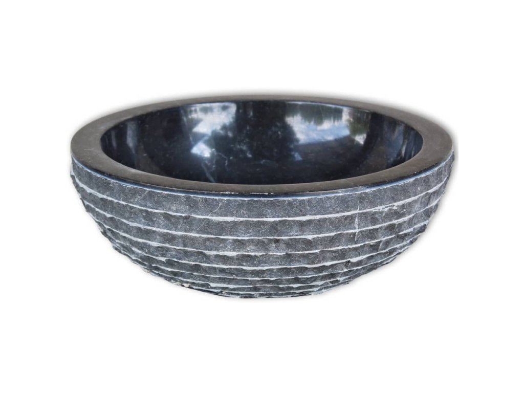 Toto umělecky zpracované umyvadlo z přírodního kamene není jen záležitostí pro každodenní použití, ale také zkrášlením vašeho bydlení. Hrubě opracovaný vnější povrch s vytesanými reliéfními pruhy dodává umyvadlu rustikální vzhled. Kulatý tvar umyvadla působí na druhou stranu elegantně a jemně. Hladký vnitřek se zajímavě doplňuje s hrubým, ale přitom elegantním vnějším povrchem. A je to právě tento vyvážený soulad, který dělá z umyvadla jedinečný a umělecký kousek. Hladce vyleštěný vnitřní povrch se opravdu snadno čistí.