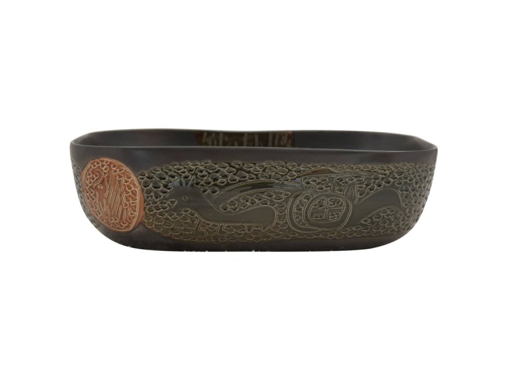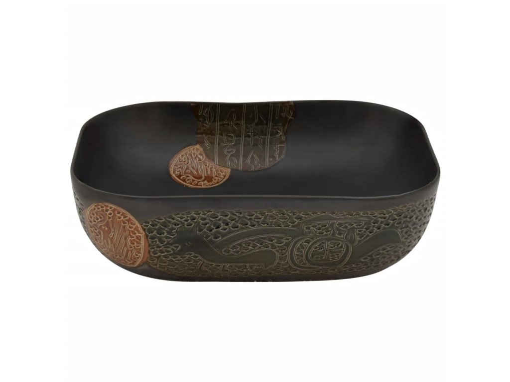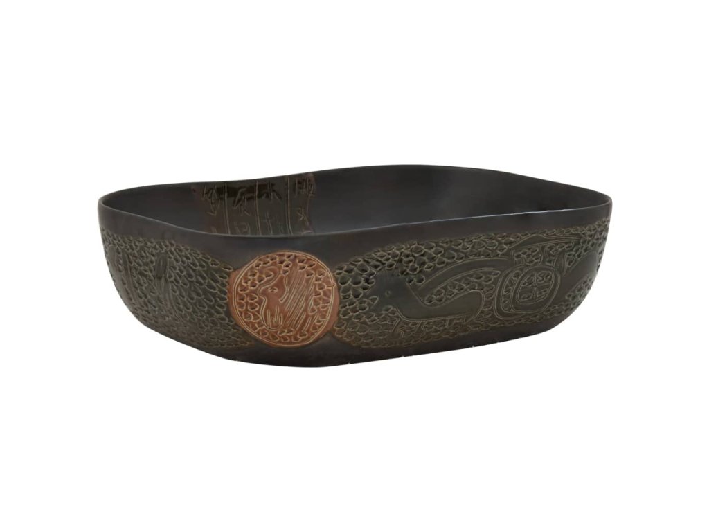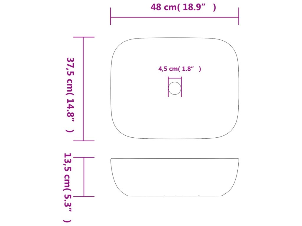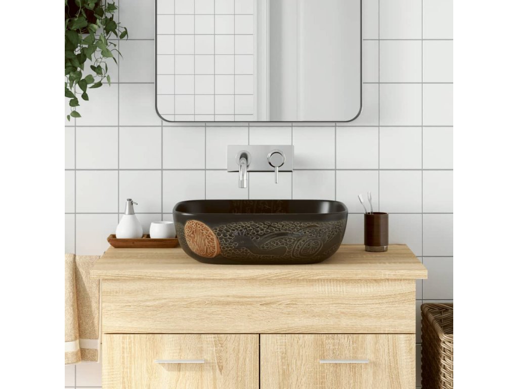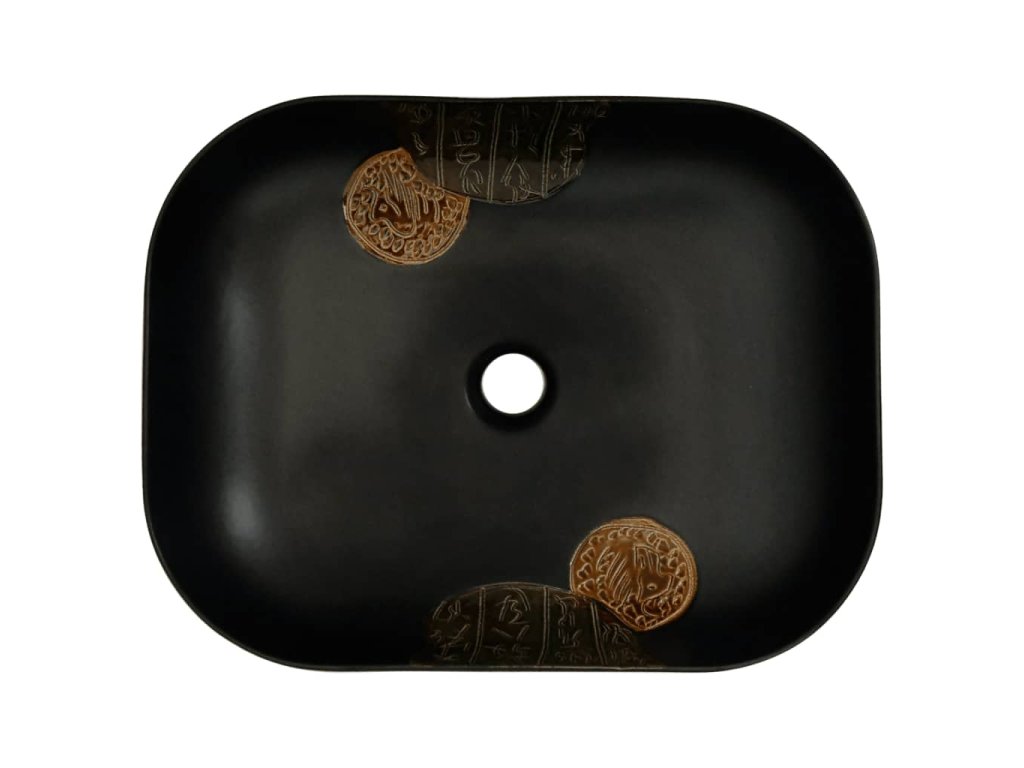 Umyvadlo na desku černé obdélník 48 x 37,5 x 13,5 cm keramika