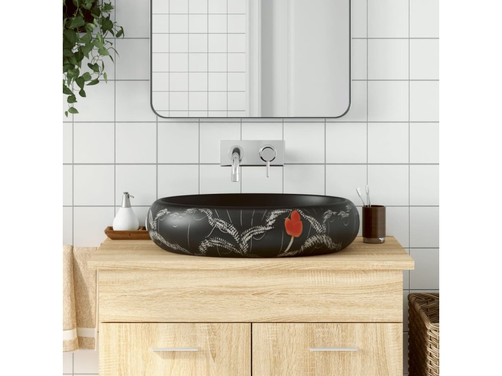 Umyvadlo na desku černé oválné 59 x 40 x 15 cm keramika