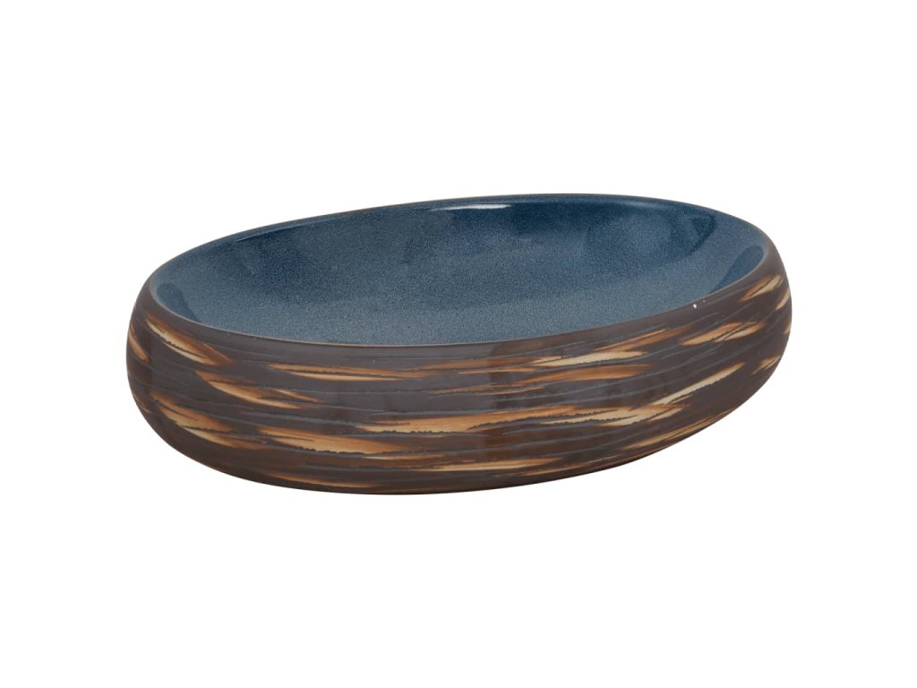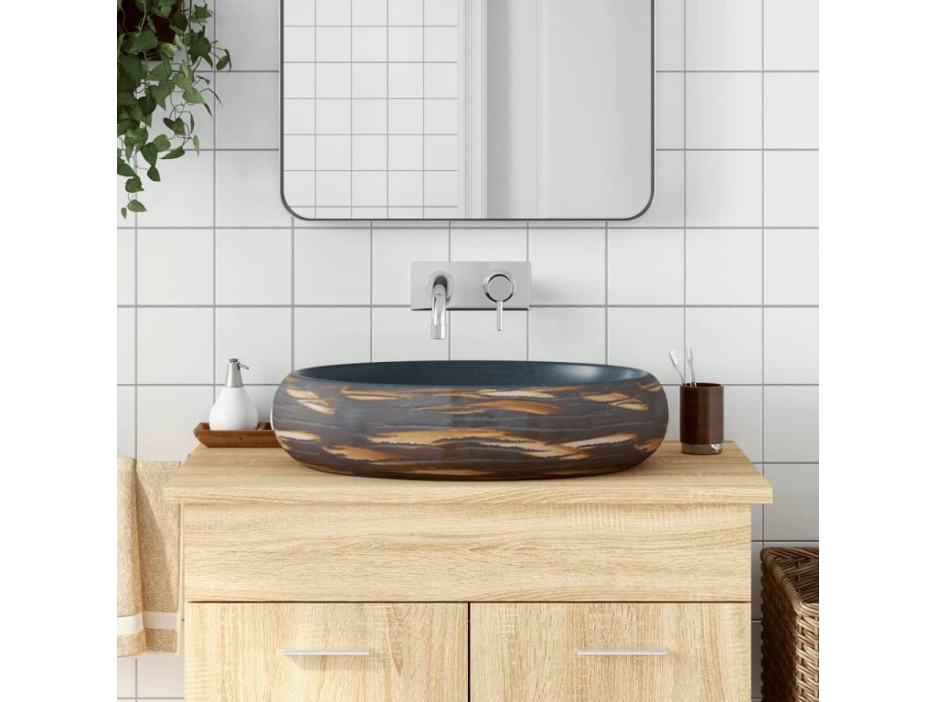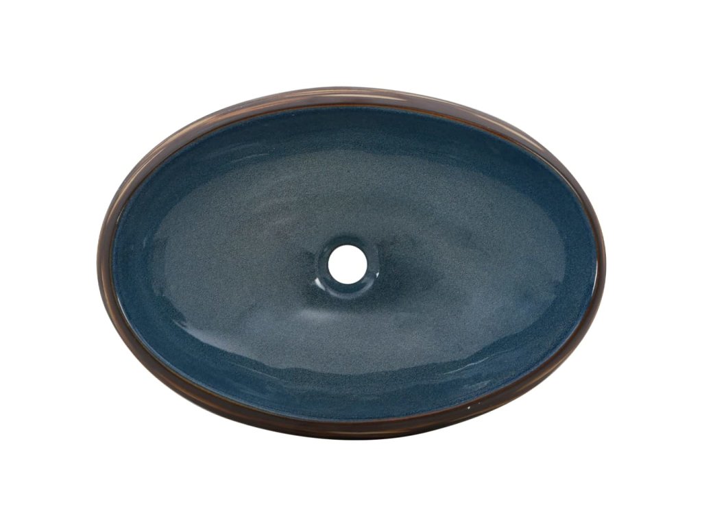Umyvadlo na desku hnědé a modré oválné 59 x 40 x 15 cm keramika