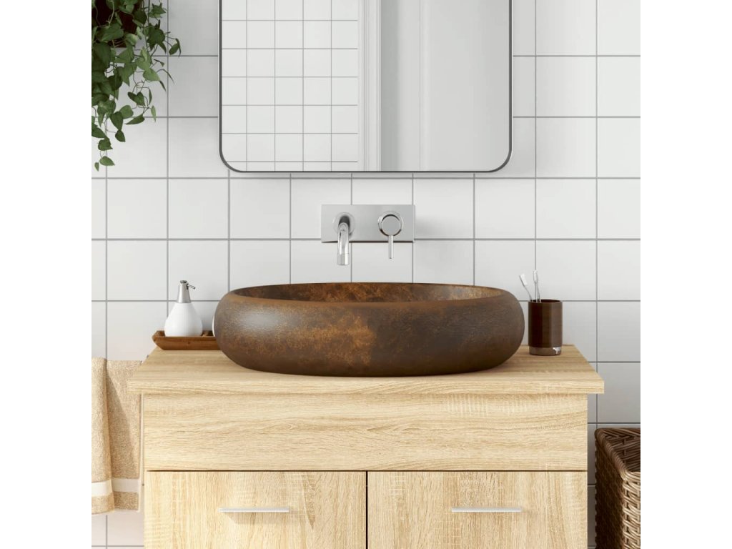 Umyvadlo na desku hnědé oválné 59 x 40 x 15 cm keramika