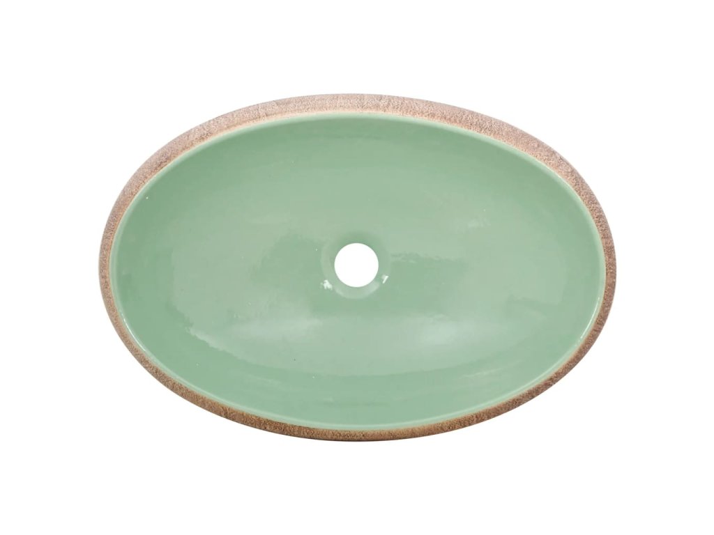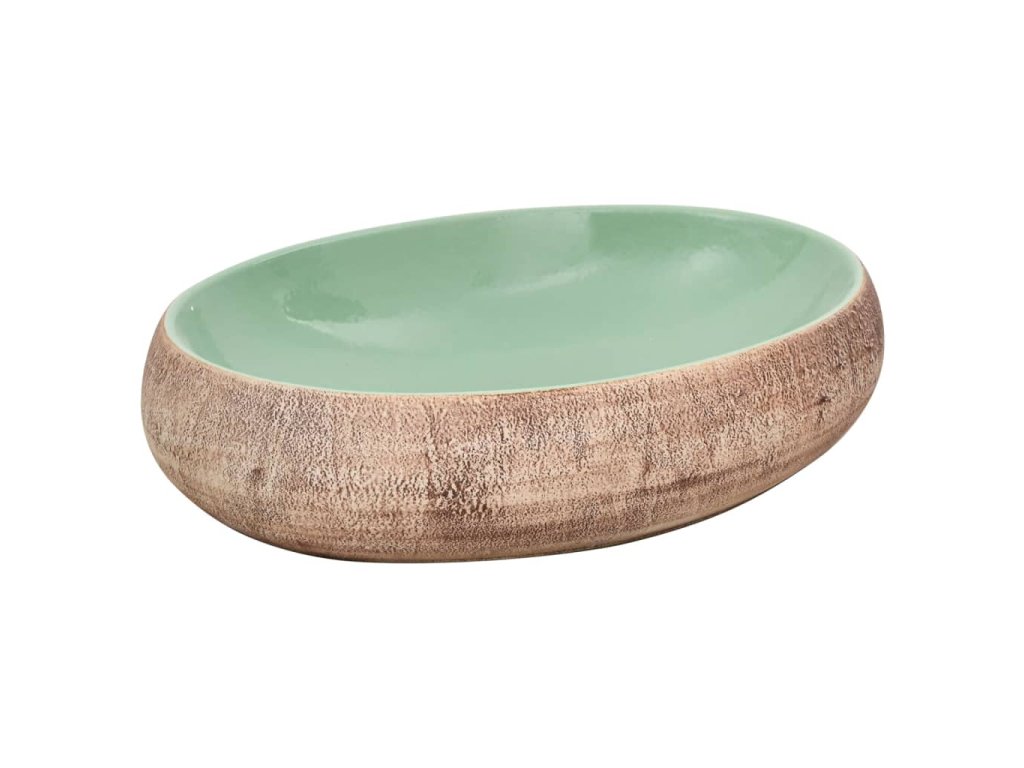 Umyvadlo na desku zelené a hnědé oválné 59x40x15 cm keramika