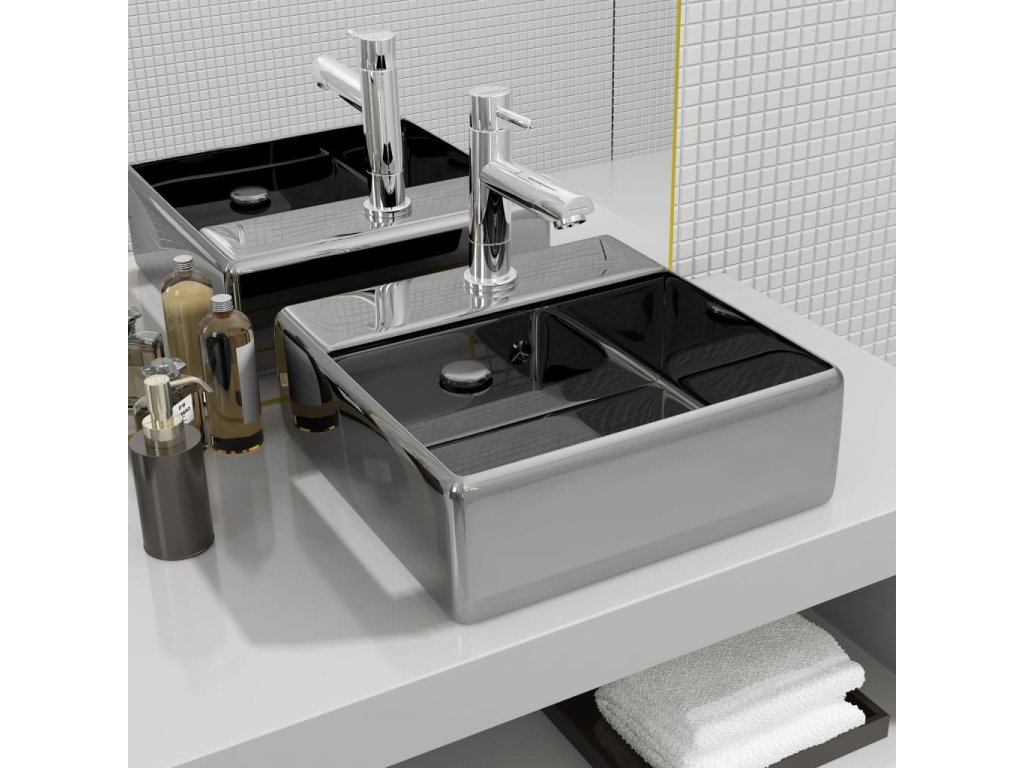 Umyvadlo s přepadem 41 x 41 x 15 cm keramika stříbrné