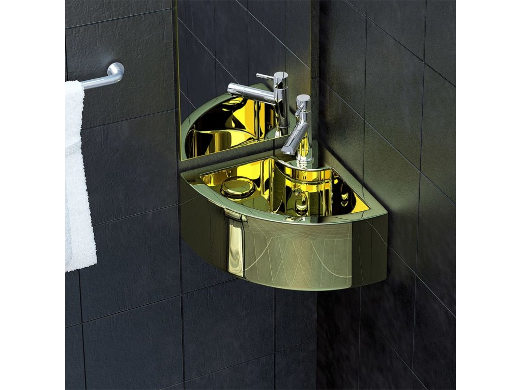 Koupelnové umyvadlo vám nejen poslouží jako prostředek k vykonávání vaší každodenní hygieny, ale stane se také skutečnou ozdobou vašeho interiéru. Díky svému modernímu a nadčasovému designu v blýskavé zlaté barvě se bude hodit do každé koupelny. Umyvadlo je vyrobeno z keramiky, velmi snadno se tedy čistí. Vysoce lesklý povrch mu navíc dodává jisté kouzlo. Umyvadlo je vybaveno přepadem, který zajistí bezpečný odtok vody, pokud se umyvadlo přeplní. Nedílnou součástí umyvadla je i otvor pro instalaci baterie.
