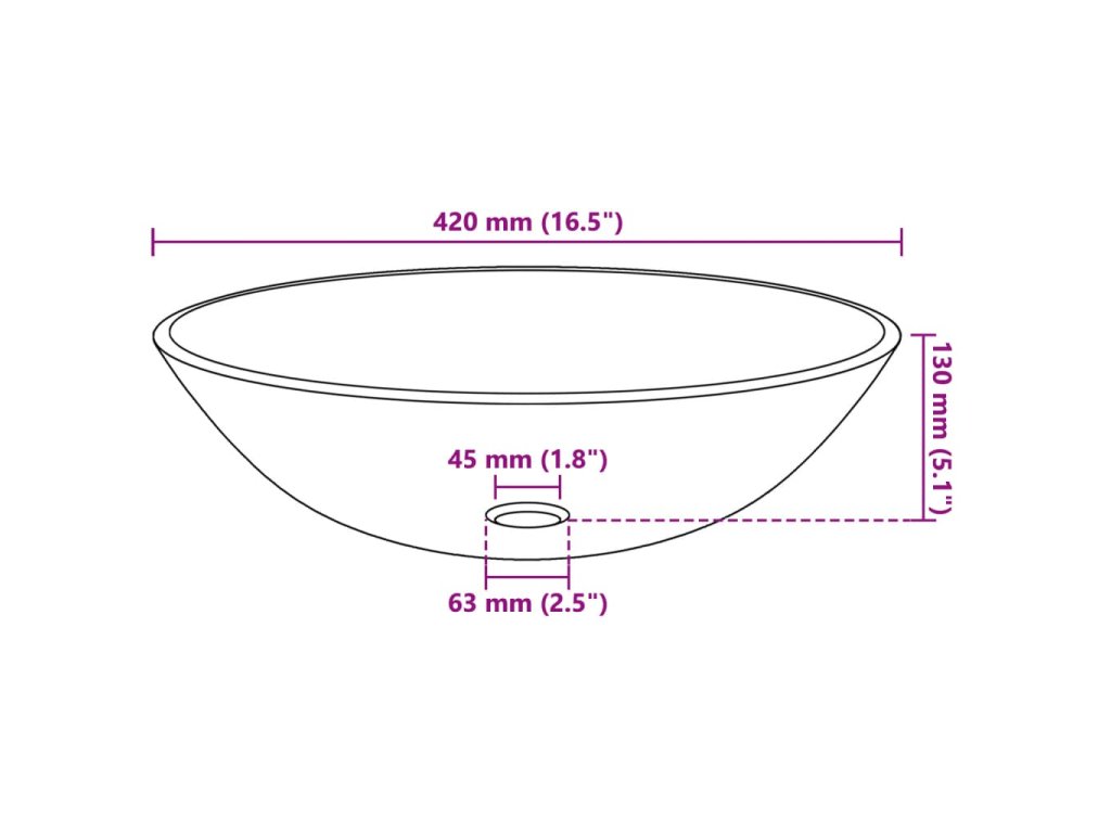 Odtokový otvor má průměr 4,5 cm. Upozorňujeme, že vodovodní baterie není součástí dodávky.