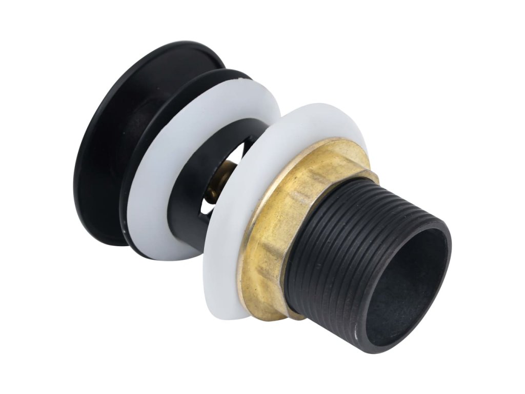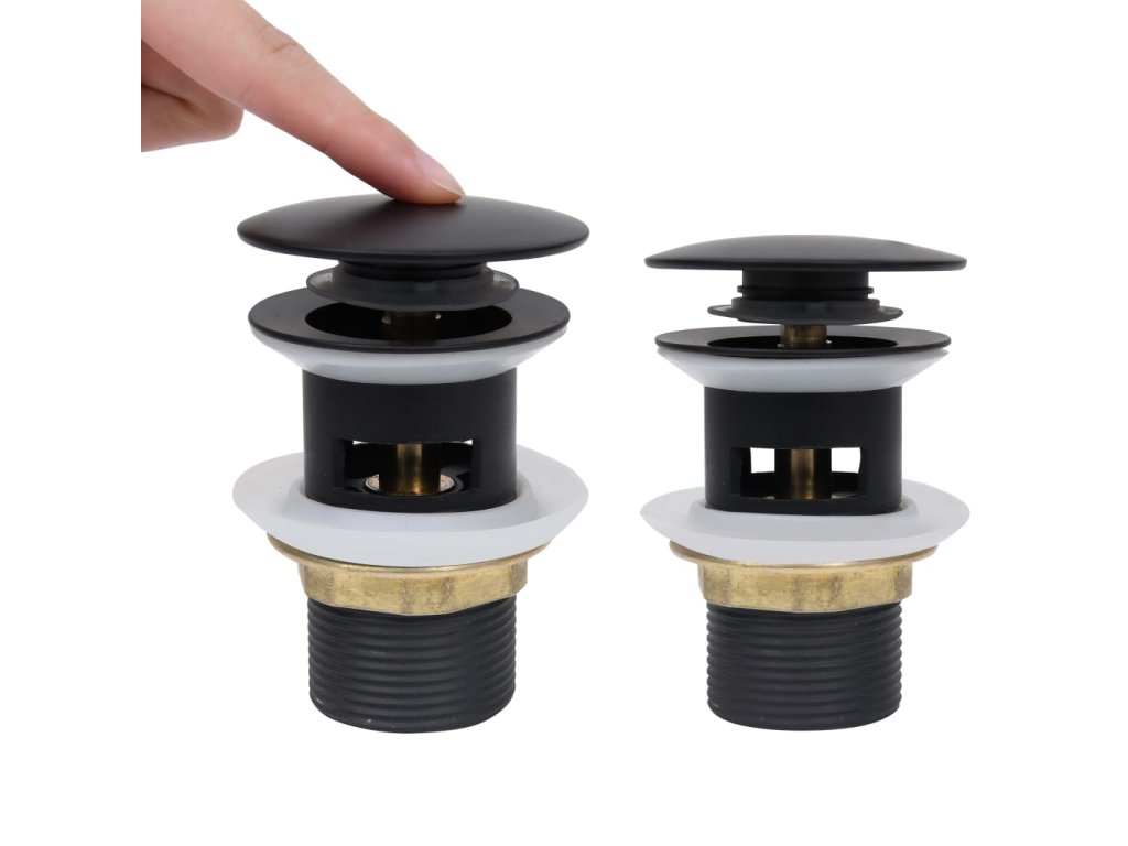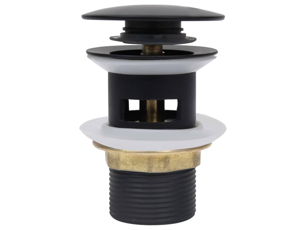Umyvadlová výpusť s přepadem černá 6,4 x 6,4 x 9,1 cm