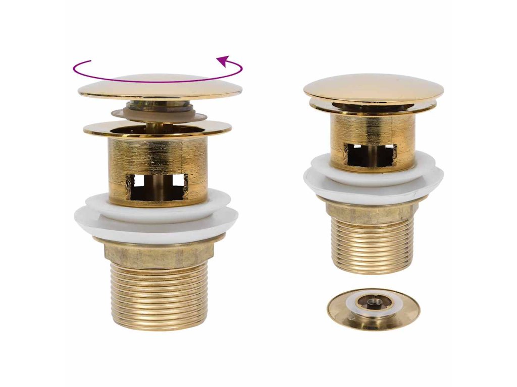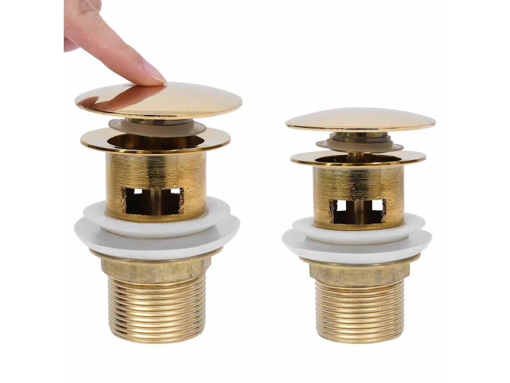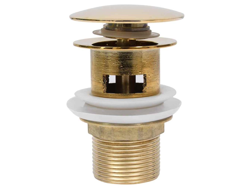 Umyvadlová výpusť s přepadem zlatá 6,4 x 6,4 x 9,1 cm