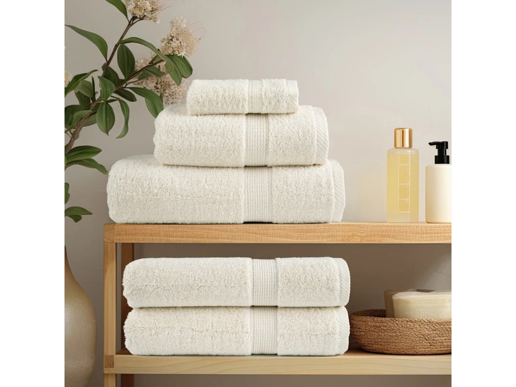 Prémiový bavlněný materiál : Tyhle ručníky jsou z 100% prvotřídní bavlny, takže jsou super měkké a skvěle sají vodu. Rychle osuší vaše ruce a obličej a přitom šetrně k pleti. Přírodní vlákna zajišťují jejich odolnost a uchovávají luxusní vzhled i po mnoha praních. Měkký dotyk : Měkkost těchto ručníků je prostě skvělá. Bavlna vám dodá luxusní pocit, ideální pro rozmazlování po umytí. Perfektní pro ty, kdo milují pohodlí a chtějí ho nabídnout i svým hostům. Snadná údržba : Tyhle ručníky se lehce udržují a jsou plně pratelné v pračce. Navržené tak, aby vydržely, i při častém praní si udrží svou strukturu a vzhled. Jen dodržujte základní tipy na praní pro nejlepší výsledky. Moderní a univerzální styl : Díky jednoduchému a funkčnímu designu se tyhle ručníky hodí do jakékoliv koupelny, ať už je minimalistická nebo ozdobná. Jejich elegantní vzhled a čisté linie dělají z nich stylovou volbu pro každodenní použití nebo hostování. Prodyšný design : Navrženy tak, aby propouštěly vzduch, tyhle ručníky pomáhají předcházet vzniku vlhkosti, zůstávají svěží a čisté. Tato konstrukce pomáhá bránit růstu plísní a bakterií a přispívá tak k zdravější koupelně. Rychle také schnou, víc než tlustší ručníky.- Barva: Krémová