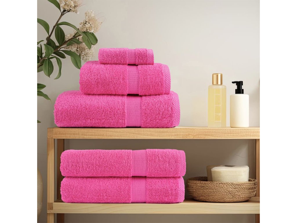 Prémiový bavlněný materiál : Tyhle ručníky jsou z 100% prvotřídní bavlny, takže jsou super měkké a skvěle sají vodu. Rychle osuší vaše ruce a obličej a přitom šetrně k pleti. Přírodní vlákna zajišťují jejich odolnost a uchovávají luxusní vzhled i po mnoha praních. Měkký dotyk : Měkkost těchto ručníků je prostě skvělá. Bavlna vám dodá luxusní pocit, ideální pro rozmazlování po umytí. Perfektní pro ty, kdo milují pohodlí a chtějí ho nabídnout i svým hostům. Snadná údržba : Tyhle ručníky se lehce udržují a jsou plně pratelné v pračce. Navržené tak, aby vydržely, i při častém praní si udrží svou strukturu a vzhled. Jen dodržujte základní tipy na praní pro nejlepší výsledky. Moderní a univerzální styl : Díky jednoduchému a funkčnímu designu se tyhle ručníky hodí do jakékoliv koupelny, ať už je minimalistická nebo ozdobná. Jejich elegantní vzhled a čisté linie dělají z nich stylovou volbu pro každodenní použití nebo hostování. Prodyšný design : Navrženy tak, aby propouštěly vzduch, tyhle ručníky pomáhají předcházet vzniku vlhkosti, zůstávají svěží a čisté. Tato konstrukce pomáhá bránit růstu plísní a bakterií a přispívá tak k zdravější koupelně. Rychle také schnou, víc než tlustší ručníky.- Barva: Růžová