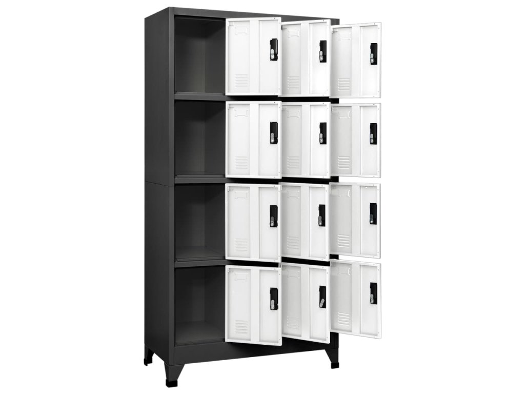 Úložná skříňka je vyrobena z oceli, proto má dlouhou životnost a snadno se čistí. Každá přihrádka je vybavena uzamykatelnými dvířky s větracími otvory. Skříň má dostatek úložného prostoru pro bezpečné uložení oblečení a dalších osobních věcí. Držáky na štítky umožňují přehledně třídit vaše položky. Tato skříň je vhodná do škol a kanceláří k uložení nejrůznějších věcí.