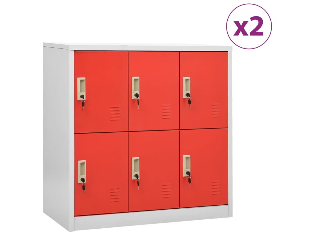 Uzamykatelné skříně 2 ks světle šedé a červené 90x45x92,5 cm