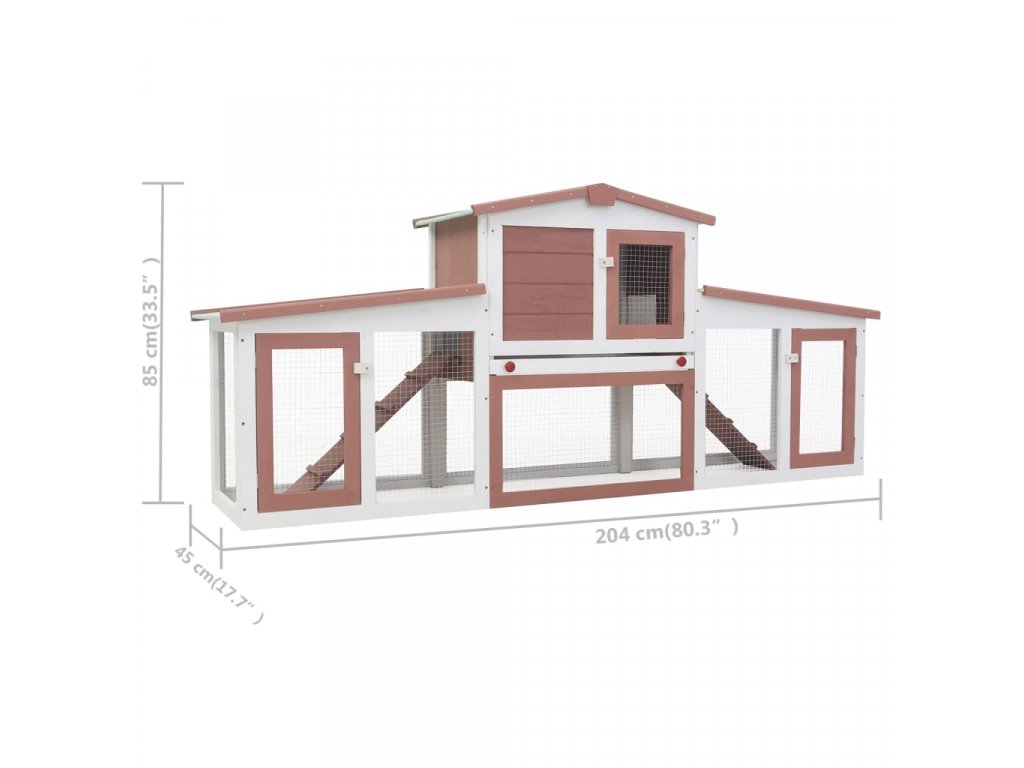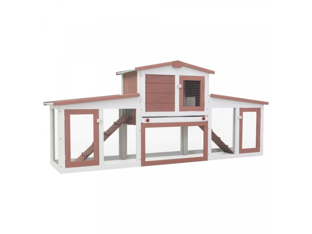 Velká venkovní králíkárna hnědo-bílá 201 x 45 x 85 cm dřevo