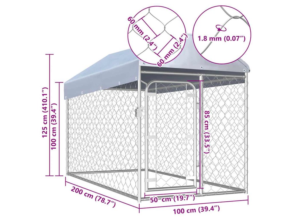 Venkovní psí kotec se střechou 200 x 100 x 125 cm
