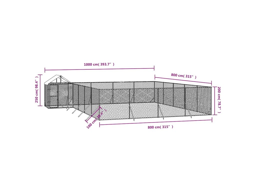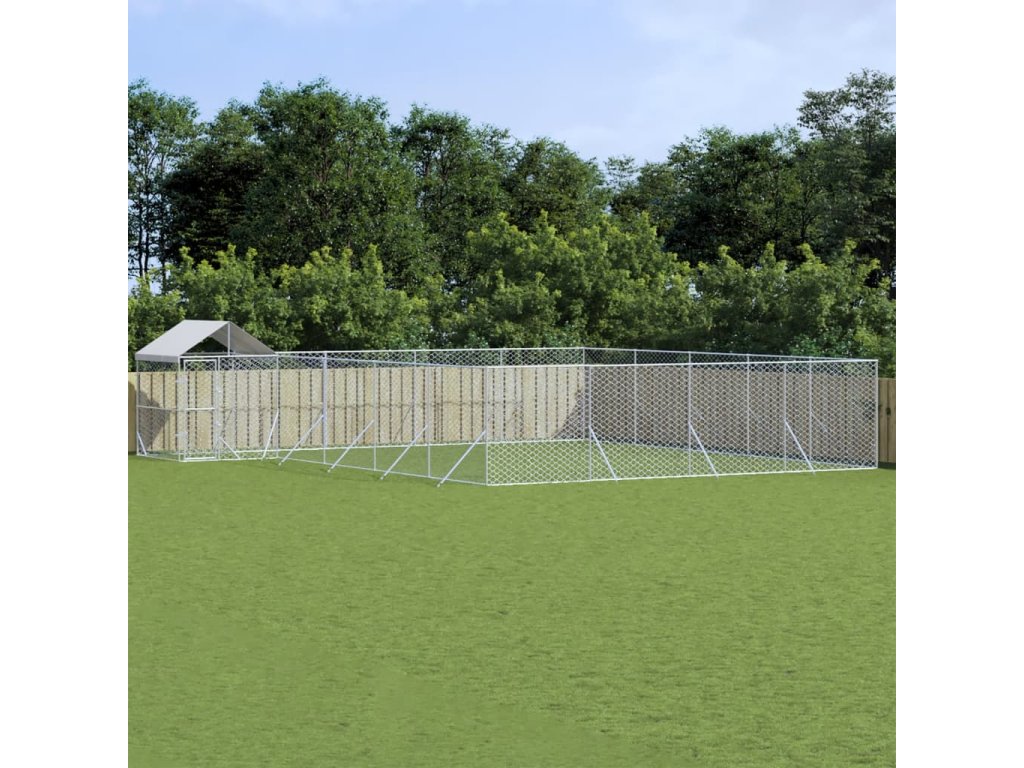 Venkovní psí kotec se střechou stříbrný 10 x 8 x 2,5 m ocel