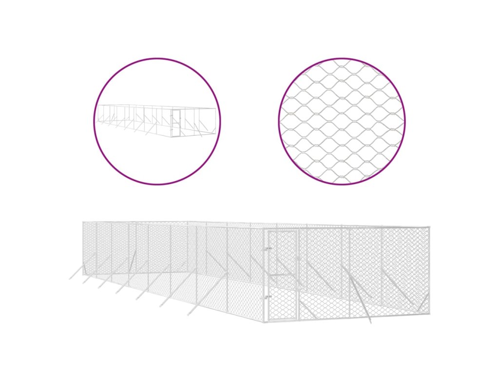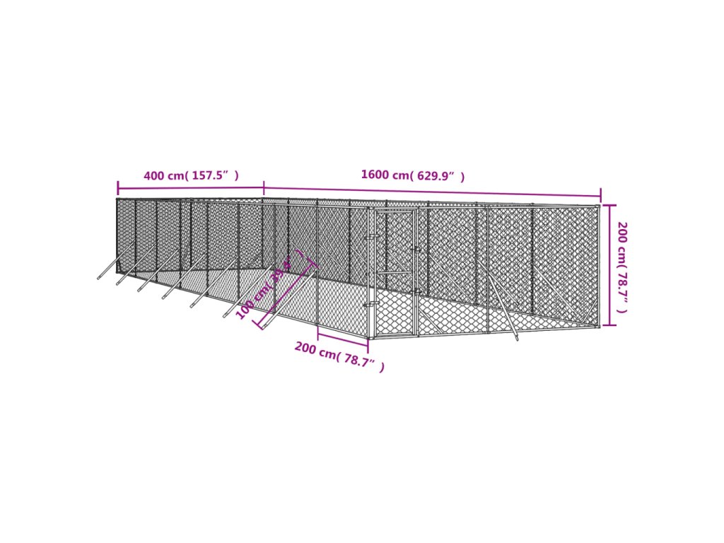 Venkovní psí kotec stříbrný 4 x 16 x 2 m pozinkovaná ocel