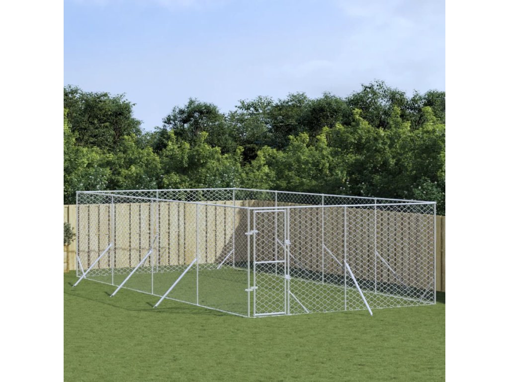 Venkovní psí kotec stříbrný 4 x 8 x 2 m pozinkovaná ocel