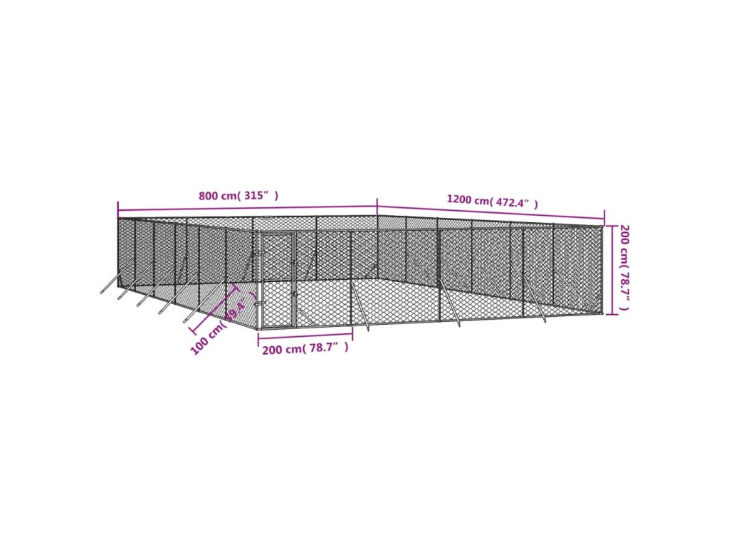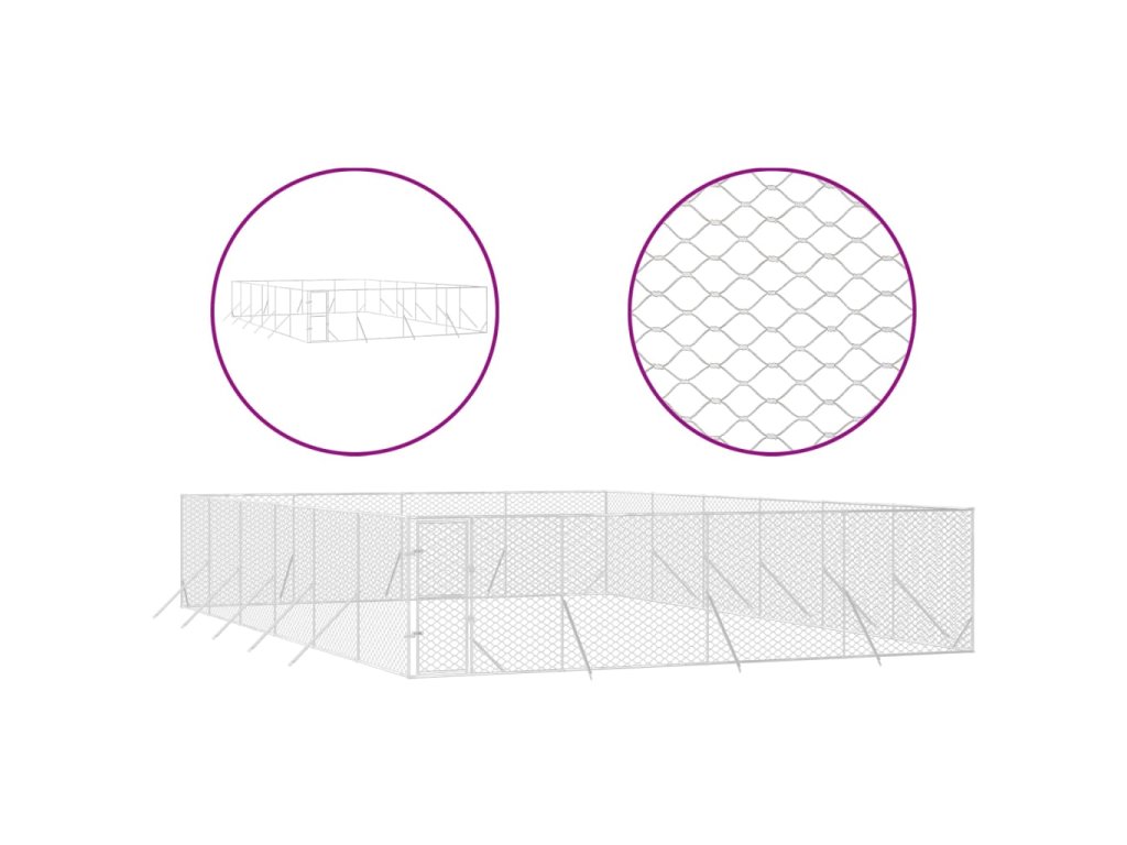 Venkovní psí kotec stříbrný 8 x 12 x 2 m pozinkovaná ocel