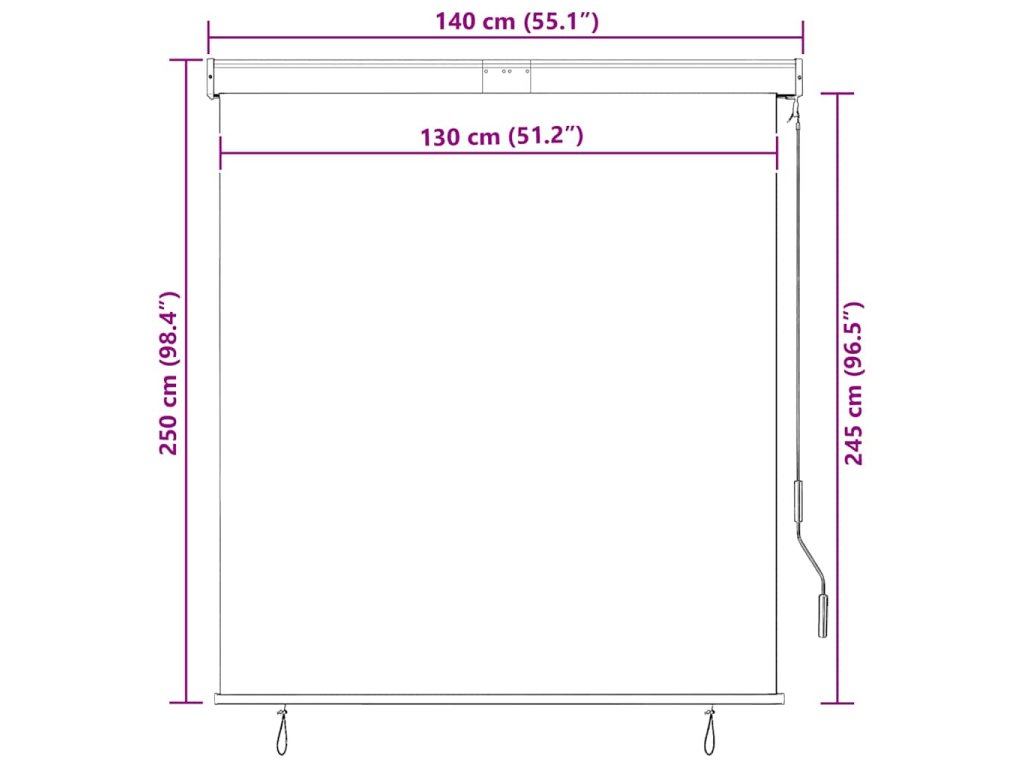 Tato vertikální markýza je vyrobená z prodyšné polyesterové látky potažené vrstvou PA, tudíž umožňuje dobré proudění vzduchu a přitom pohltí většinu škodlivého záření. Přes den vám také zajistí soukromí na terase, zahradě či v jiném venkovním prostředí. Přední tyč z hliníku a ocelová kazeta zabraňují sesouvání a prohýbání rolety. Zatahovat a vytahovat ji můžete pomocí ručního klikového mechanismu.