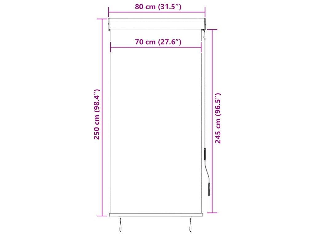 Tato vertikální markýza je vyrobená z prodyšné polyesterové látky potažené vrstvou PA, tudíž umožňuje dobré proudění vzduchu a přitom pohltí většinu škodlivého záření. Přes den vám také zajistí soukromí na terase, zahradě či v jiném venkovním prostředí. Přední tyč z hliníku a ocelová kazeta zabraňují sesouvání a prohýbání rolety. Zatahovat a vytahovat ji můžete pomocí ručního klikového mechanismu.